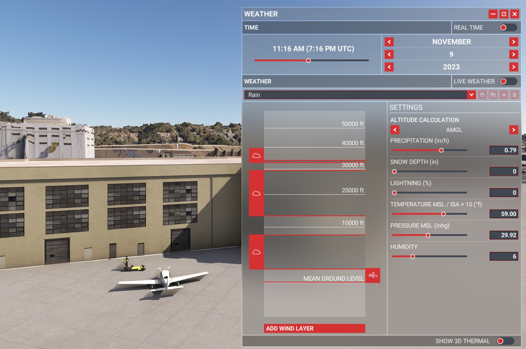 This one has me stumped. I’m in the beta, and for the last several weeks I’ve just been flying in blue skies using the ‘Clear Skies’ preset. Today I decided to switch to Rain, but - no rain or anything else anywhere. None of the presets actually work, because all I’m getting is blue skies. Here’s what I have right now: