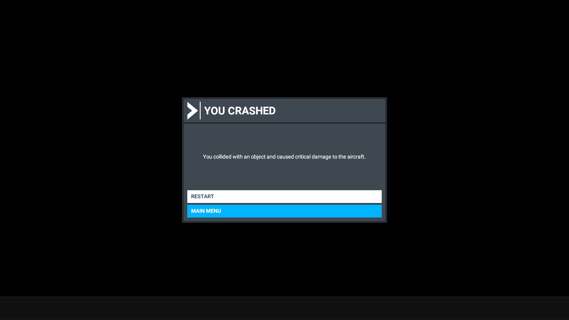 That lasted about 15 seconds before an explosion and this screen. It should be noted that I ‘collided with an object’ despite starting cold & dark and never even seeing my plane.