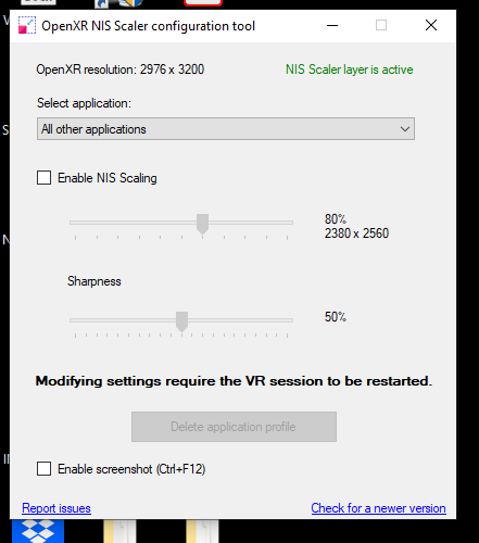 How do you shut scaler off, mine keeps saying that it has NIS SCaler layer is active. I want to go back to using vr without this tool just to experiment.