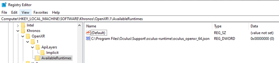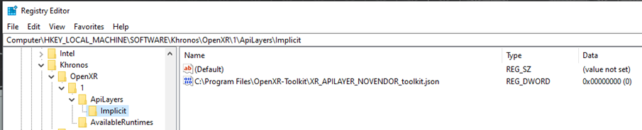 Here is my current OpenXR registry stettings.
