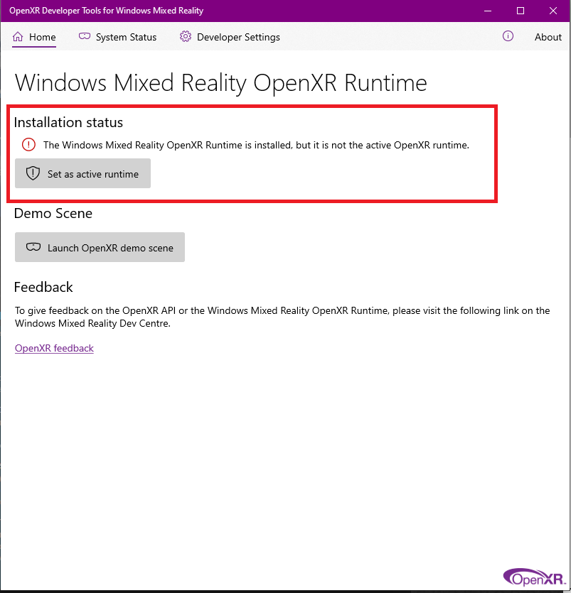 The confusion is that there are (at least) two versions of OpenXR Runtime - the Windows Mixed Reality version and the SteamVR version.