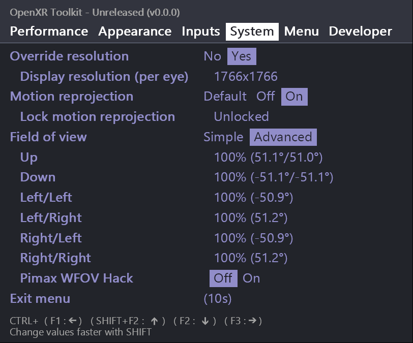 Note that a few things have moved around!. The Lock motion reprojection and FOV settings will now be in the (new) _System) tab.