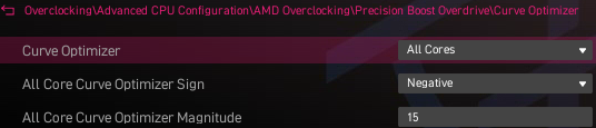 All Core Curve Optimizer Magnitude also lower the CPU VCore - the higher the number, the lower the VCore. Too low a VCore can make the CPU and system unstable, so keep this in mind when adjusting.