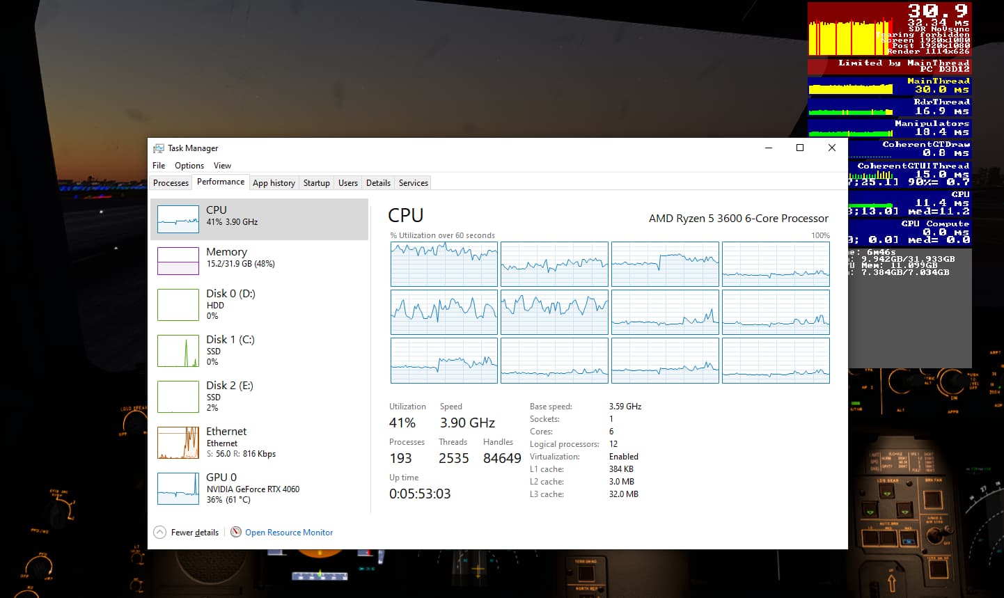 If you really want to try fine tuning, it wouldn’t be a bad idea to kill any unnecessary background programs. If you use Razer Chroma for RGB control, try switching to Signal RGB. I’ve found Chroma caused a lot of stuttering in the sim even though it doesn’t appear to be CPU heavy, and seen many others report the same.