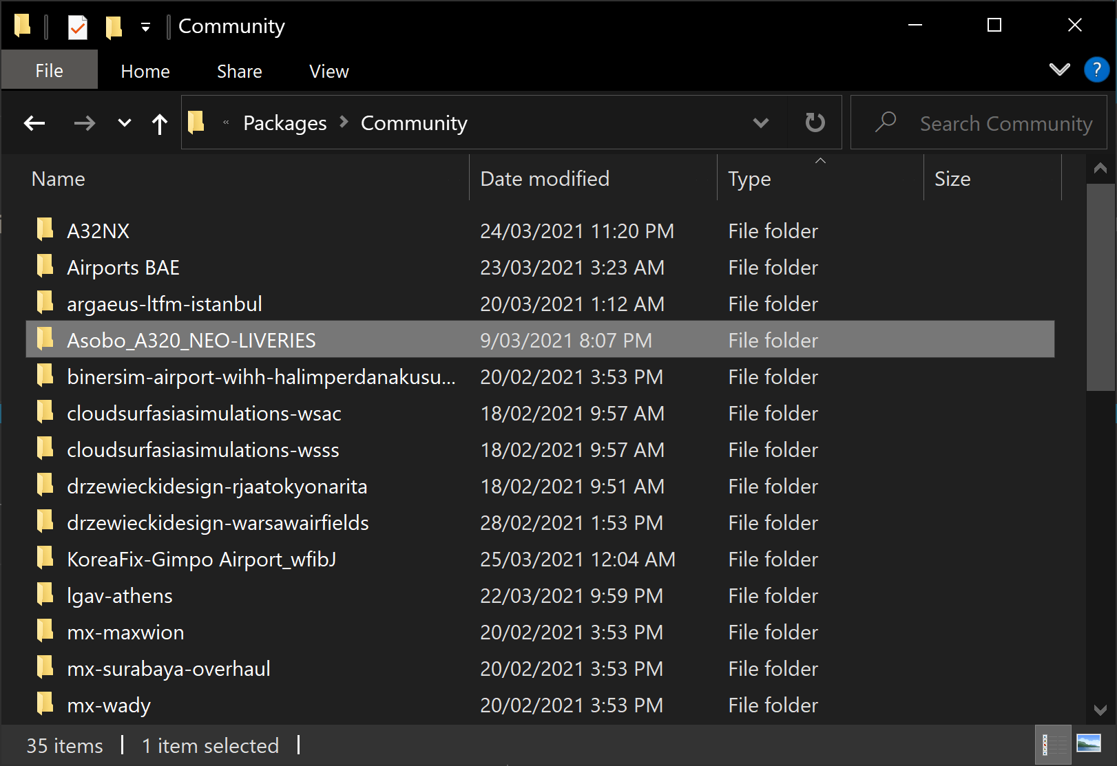 However all the nested liveries are not showing up ( in-game ) - ie having one folder for all the A320 liveries. I moved everything out of community, then back in and regenerated the layout.json. Didn’t seem to work.