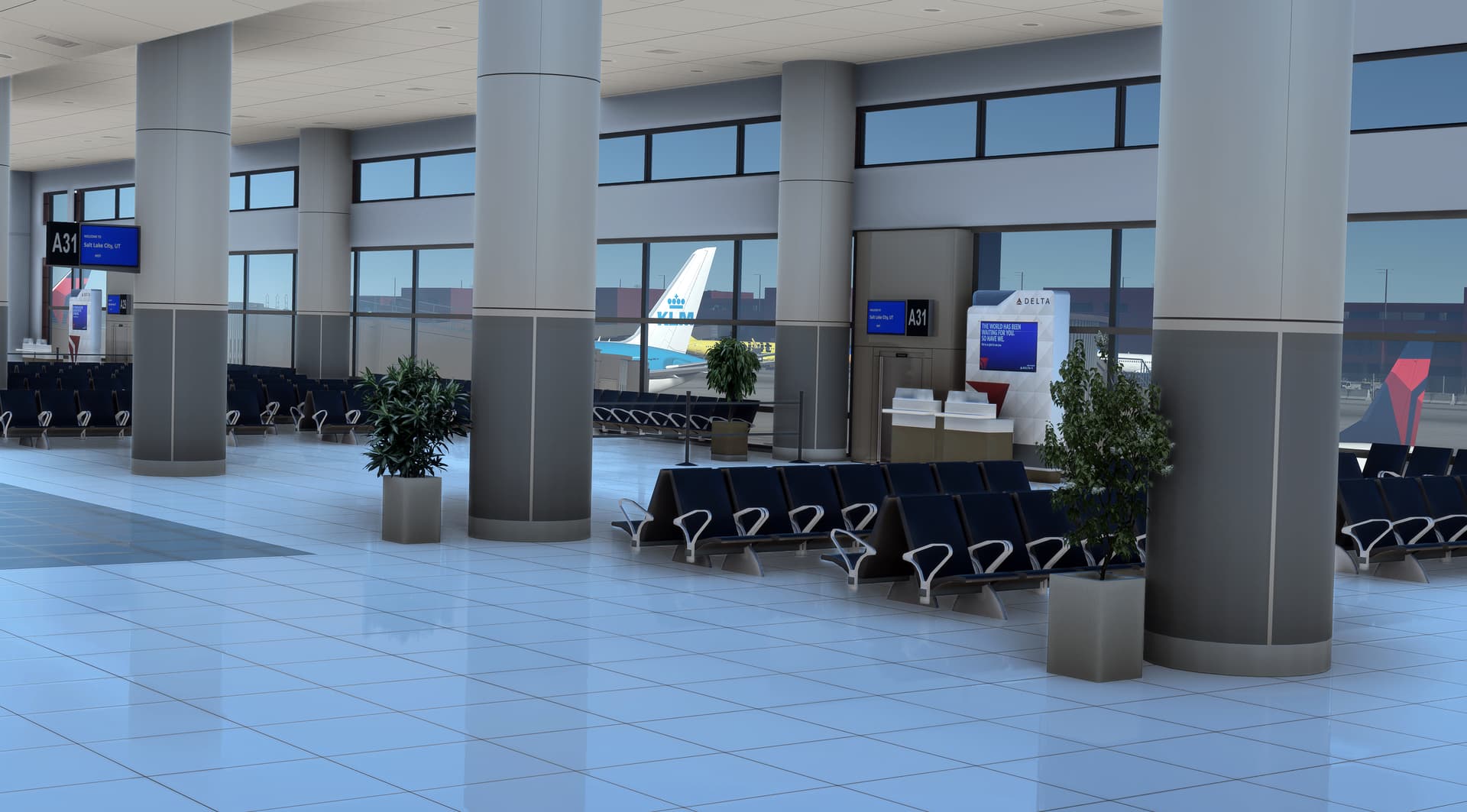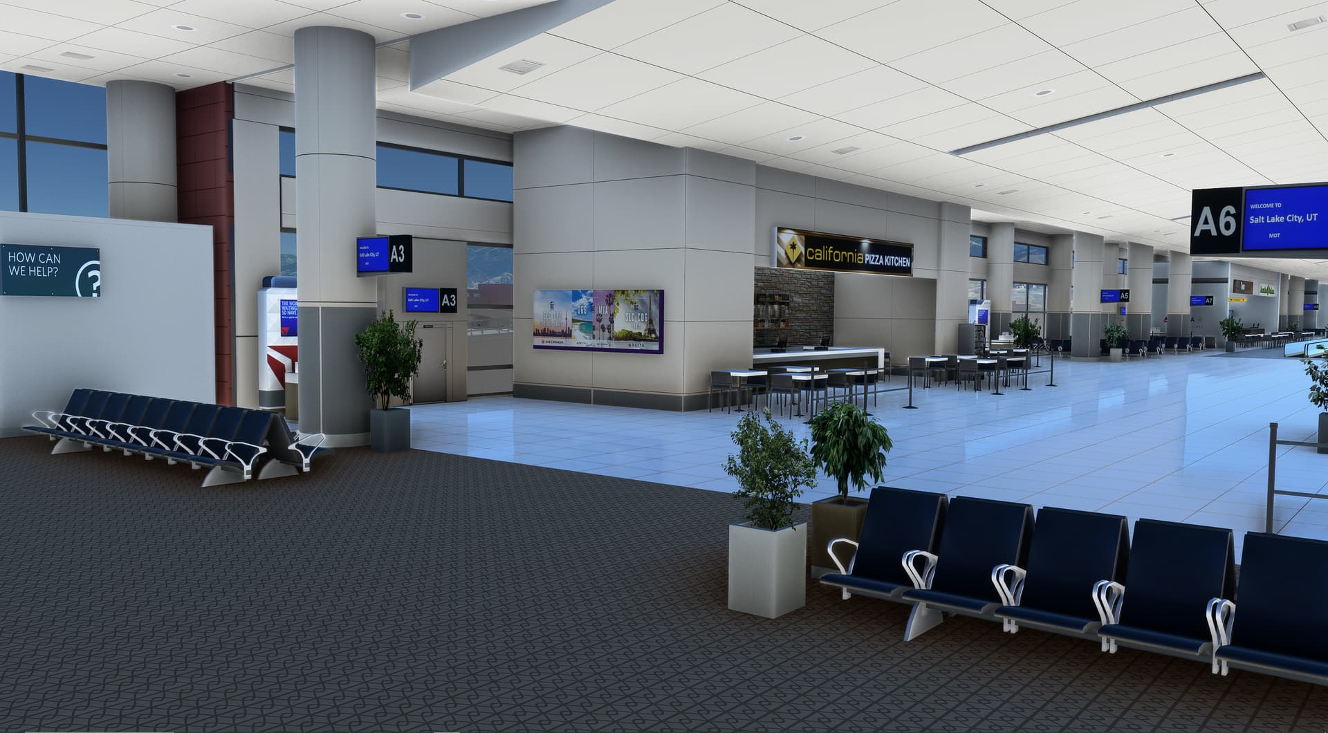June Update: Interior work finally completed. Utahns and frequent KSLC flyers should be familiar with the new interior airport layout. Not all your favorite shops and restaurants are included in this build but the general ambiance is immersive enough to enjoy. We also have the Honeywell Type 1 Video Guidance System (VDGS) configured for large, medium and small-sized aircraft for all 68 gates. Gotta love smart parking.