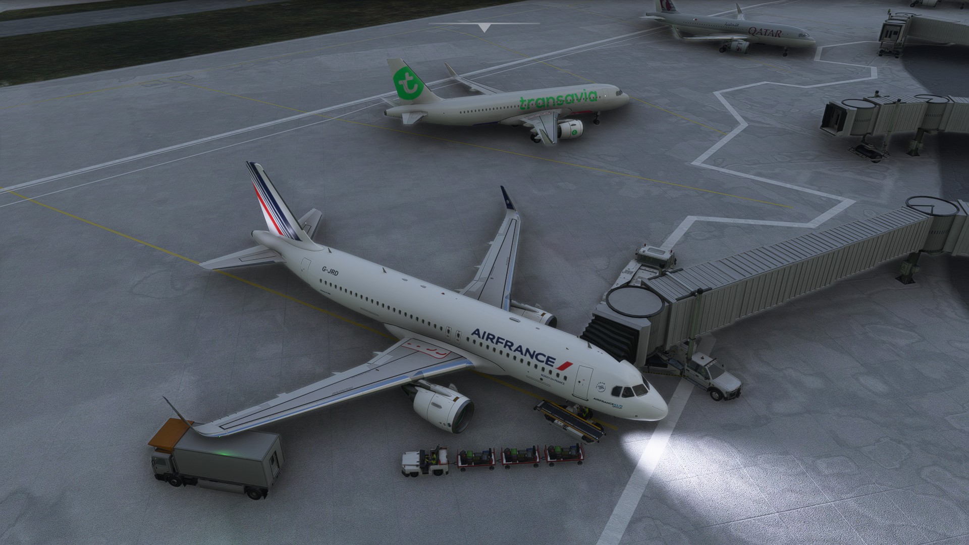 Edit: LFPO, my stand ends right in the baggage carts, the marshaller is ofset to the left at the jetbridge but look at the Transavia above… there is something wrong with placements and algorithms. But at least the jetbridge was able to traverse the distance for me…