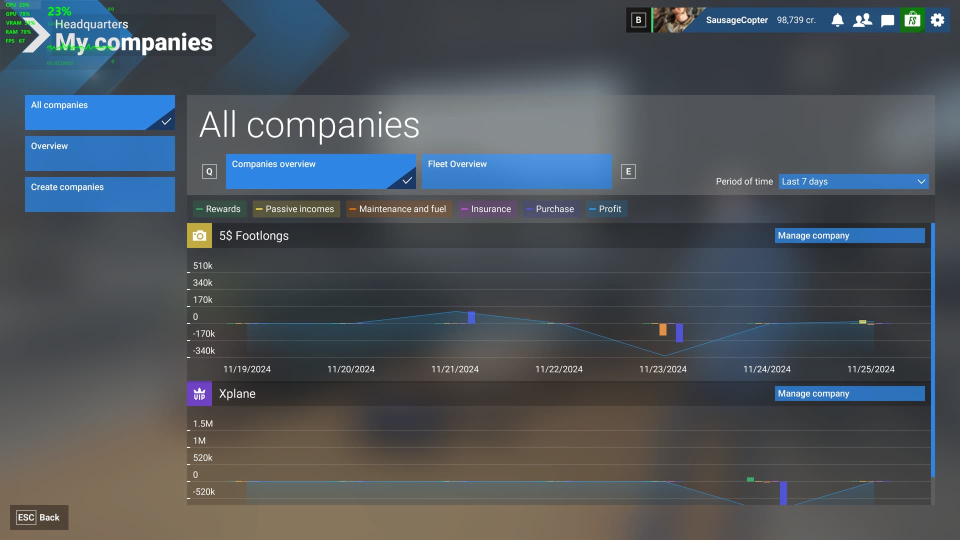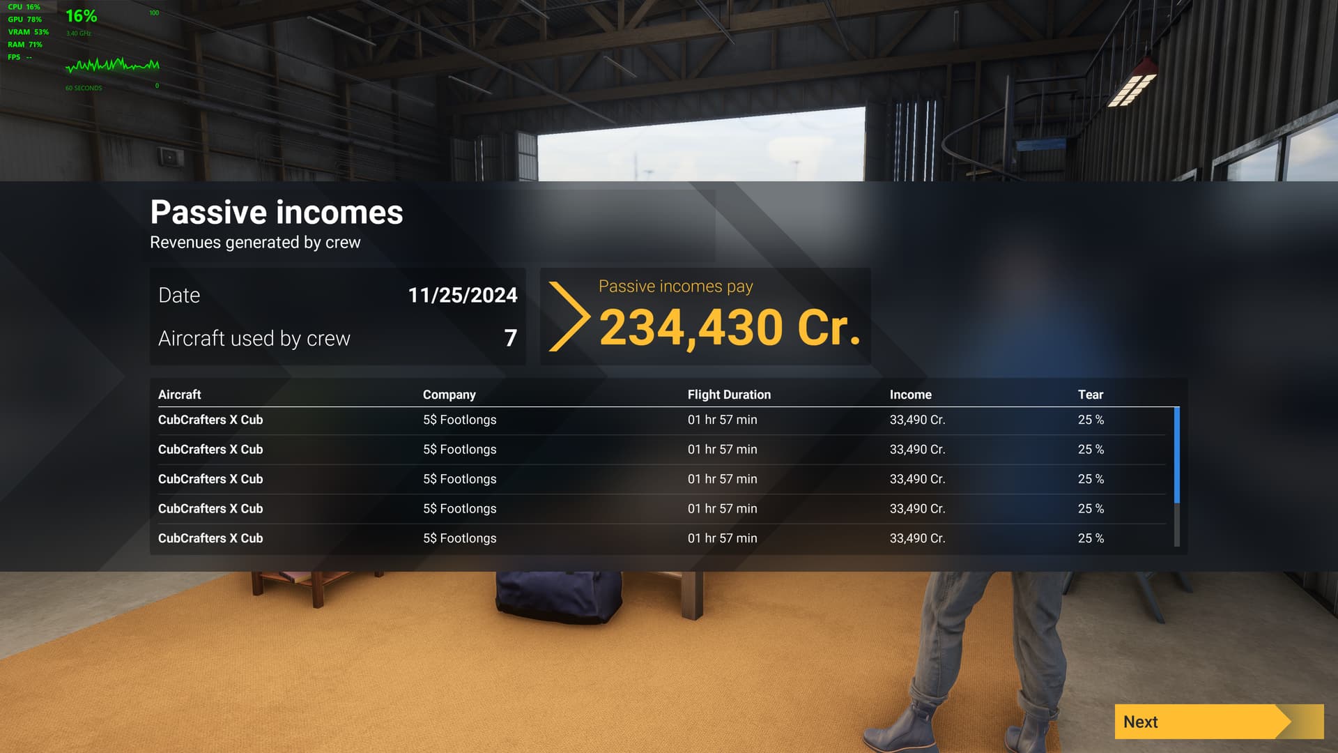 Last night, I even made sure that before I logged off, I moved my planes to an airport with an active job for them. When I click Overview > Account History > Passive Incomes, it shows total passive income as 0 cr., total flights as 0, and total flight hours as 10 minutes. This has been the same amount for the past 3 days.