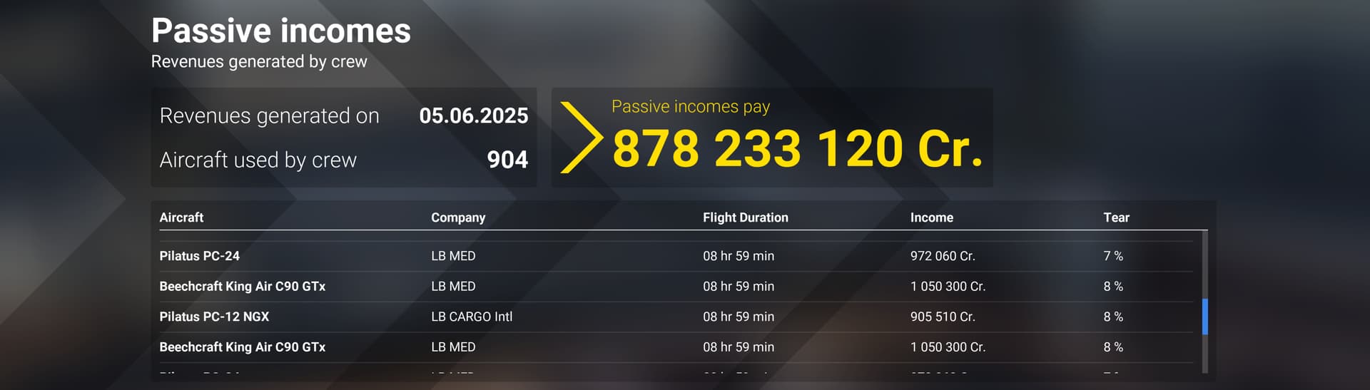 Oh yes agreed, but I cannot get the PC24 to steer so I am grinding Cr with the PC12. The CJ4 is now hellishly expensive too and not worthwhile. They need to increase the earnings for the CJ4 and the 737 if they do not want to be fairer with maintenance and initial purchase costs. I have finally bought my 737 but as you say the many folk on here who complain about the CTD’s and mission failures make me reluctant to use it. So I am leaving it on OFF for now. Secondly, the Cr earned on passive for this will not make it worthwhile in terms of maintenance and repairs. How much do you earn for the 737 per mission hours on passive?