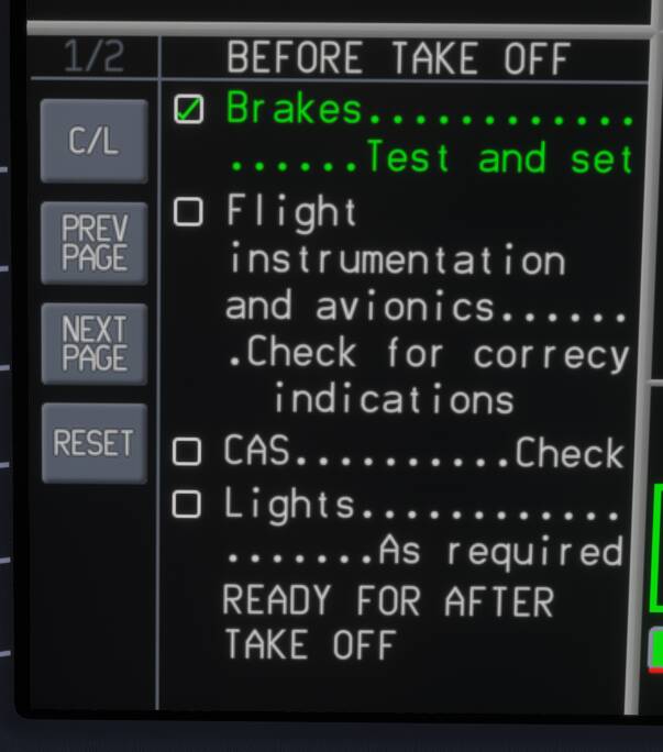 There is a spelling error on the before take off checklist. It should be “Check for correct”. Instead it says “Check for correcy”.