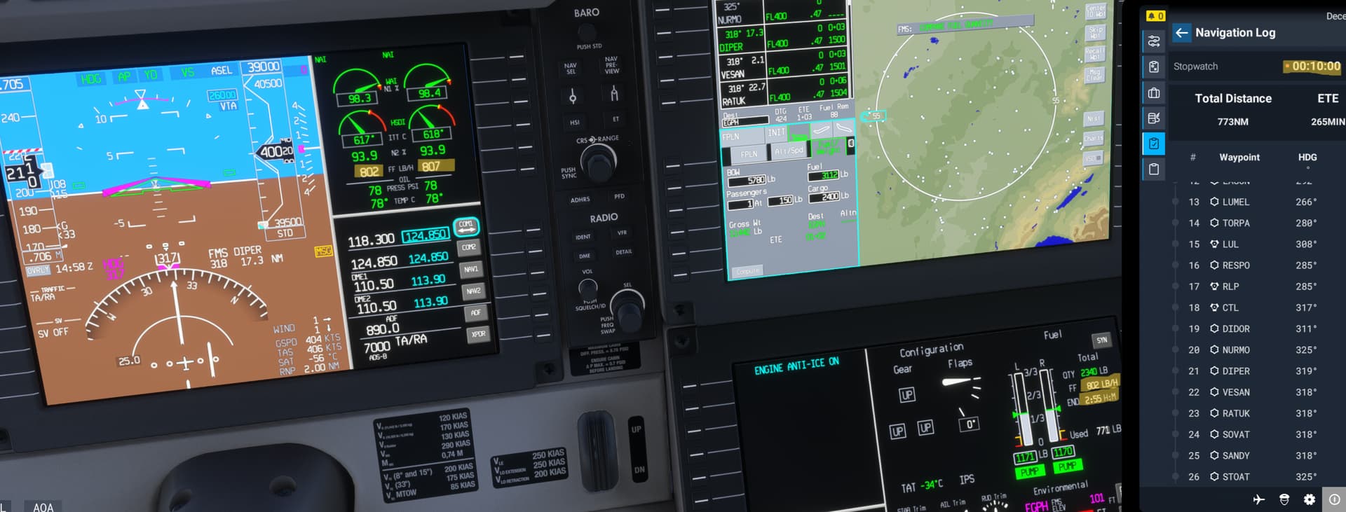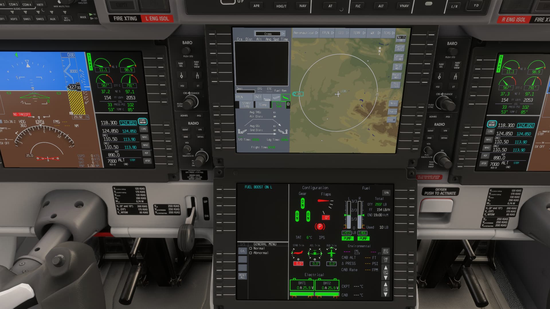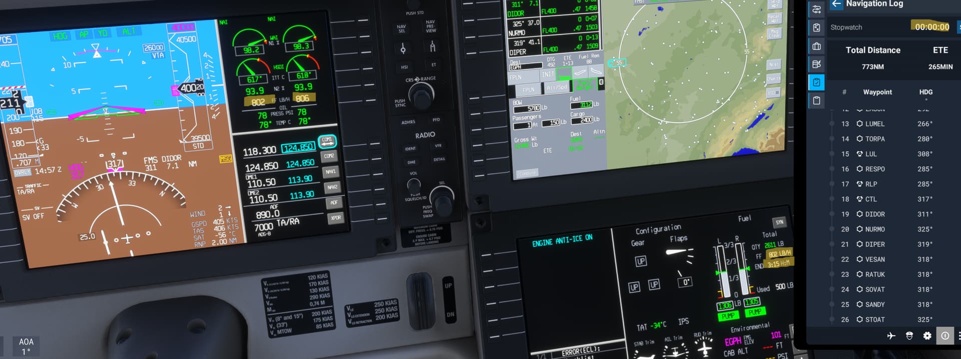 Initially, the flight time indicated with full tanks aligns with the known performance of the PC-24. This made me wonder if the fuel flow shown on the fuel flow computer is accurate, while the values displayed below each engine might be incorrect or should potentially be half of what they currently indicate.