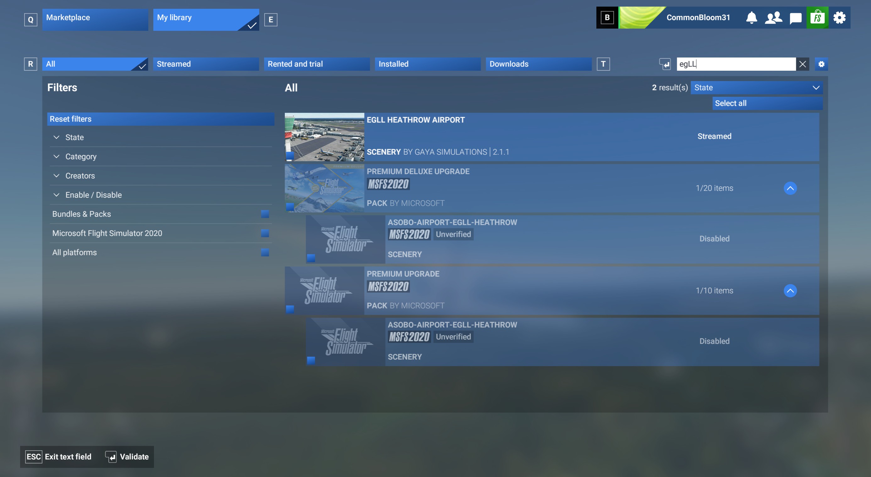 Description of the issue: PD2020 content partially is not available for upgrade to fs2024 as market place is not able to find it, it looks like the missing content is not available to be streamed separately from non-standard packages. These addons are not available for upgrade: fs24-Asobo-aircraft-b787, fs24-Asobo-airport-egll-heathrow, fs24-Asobo-airport-omdb-dubai-intl, fs24-Asobo-airport-kden-denver, fs24-Asobo-airport-eddf-frankfurt.