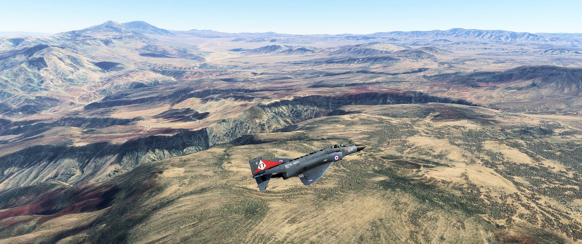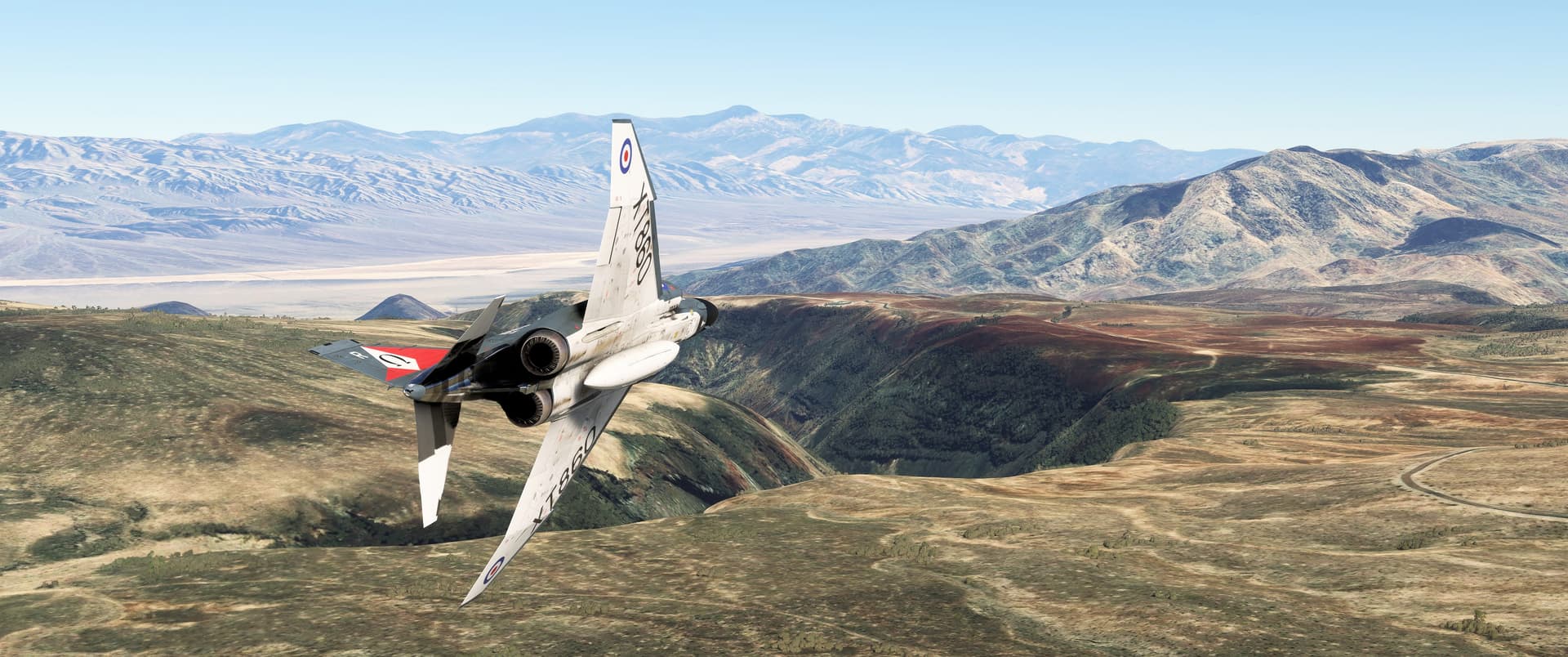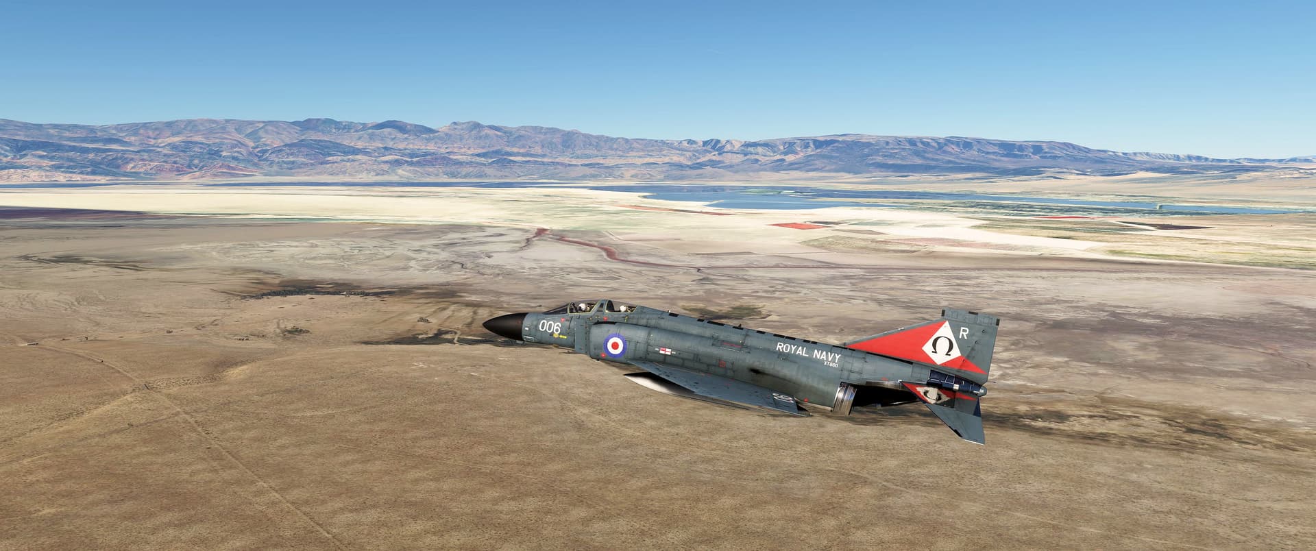 Here’s F-4J BuNo. 155587 in the markings of VF-143, one of the stock skins in DC Designs’s Phantom package. One of 522 J-model Phantoms built between 1966 and 1972, 5887 served with VF-143 at NAS Miramar until 1974 when the “Pukin’ Dogs” transitioned to the F-14 Tomcat. She subsequently passed to the “Aardvarks” of VF-114 and the “Pacemakers” of VF-121, then joined the Marine Corps and the “Lancers” of VMFA-212. Converted to an F-4S, 5887 joined VMFA-232’s “Red Devils” and was retired at MCAS Cherry Point in June 1986. Her ultimate fate is unknown.