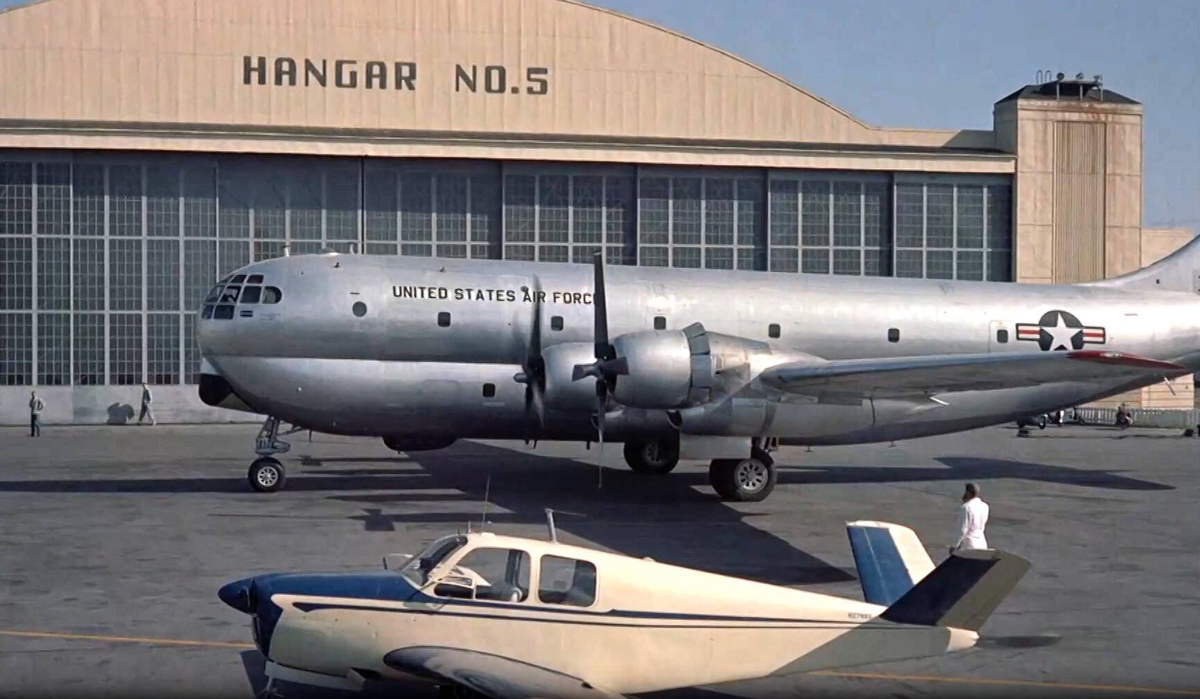 The producers of Strategic Air Command strove for realism and took few liberties, but when General Hawks’s C-97 stops at Wichita, that’s actually MacDill’s (4) Hangar 5 in the background. Note that sometime after 1954, MacDill’s hangars were renumbered. Hangar 5 is now Hangar 1, and 3 is now 2.