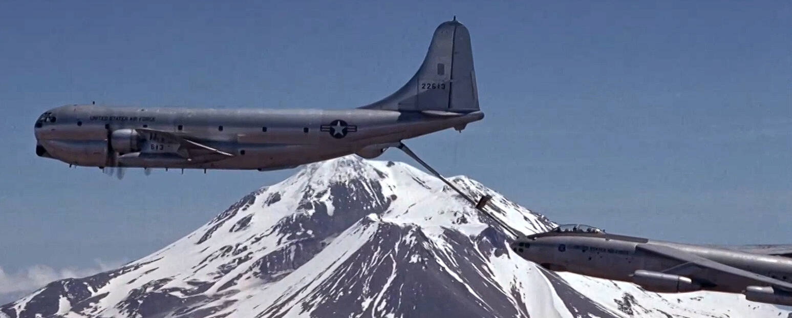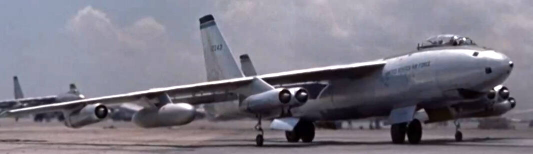 Pee-Wee says: Watch carefully as the B-47 turns onto the runway and you’ll see the aircraft’s left outrigger gimble, something that only happened during tight turns. I’d never seen that happen before! We’ll talk about the takeoff scene and SAC’s willingness to disregard safety for the sake of filming later. ![]()