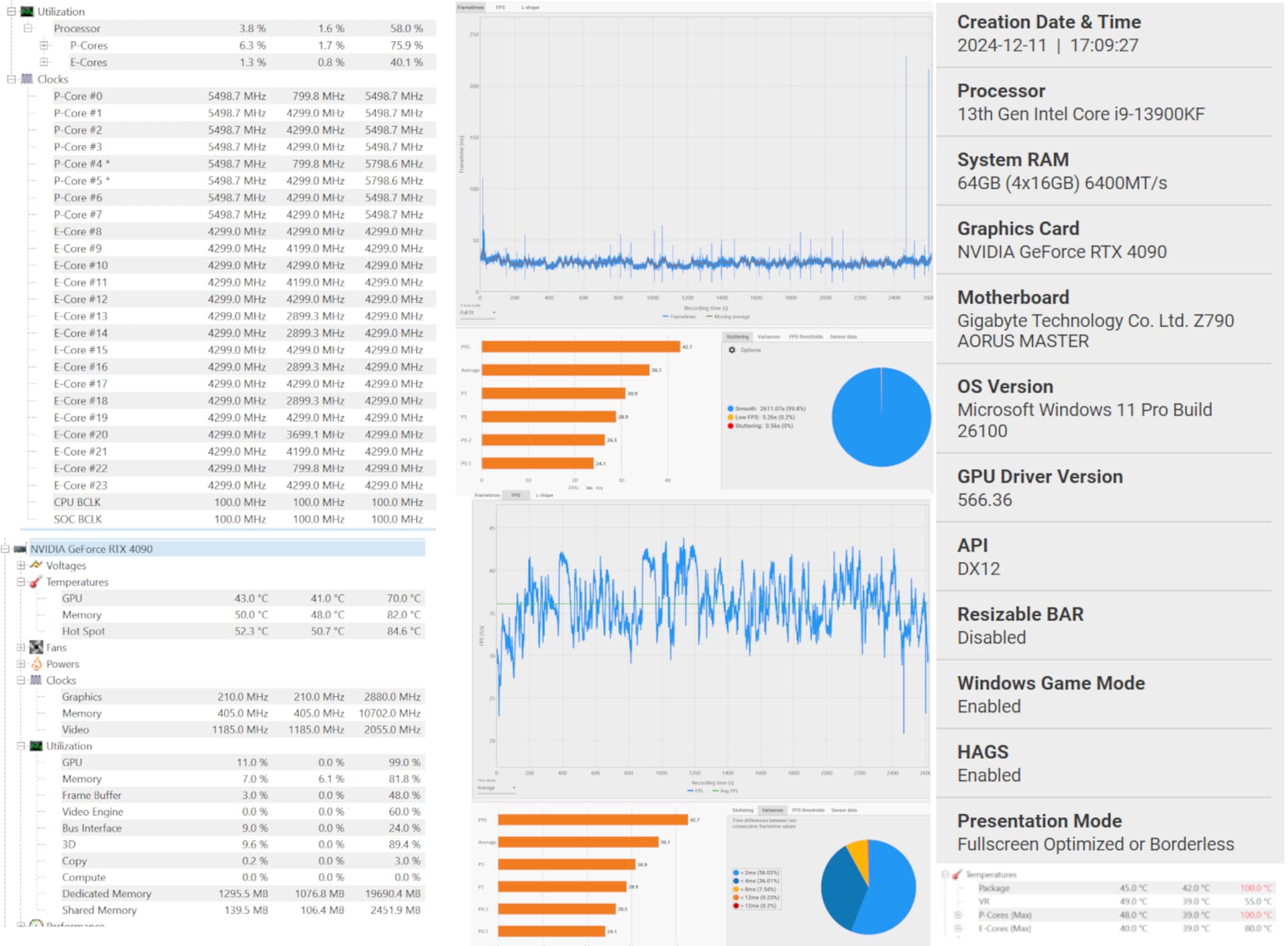 Benchmarking software running (CapFrameX, Project Lasso, and an hw monitor).