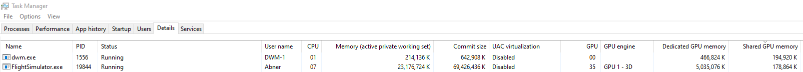 In my opinion the memory management of MSFS must be optimized / changed. I mentioned this alread in other thread : an application should not “think” it can allocate unlimited memory. Well optimized applications stop by around 80% of existing physical RAM. The users with 64GIG are already on a the good side, but what should users do with 16GIG RAM - have a 60GIG pagefile ? This can never be an option and these users risc each day that here SSD will fail. In case some features are not possible with the existing amount of RAM, the user can simple not select it or see the amount of details or whatever.