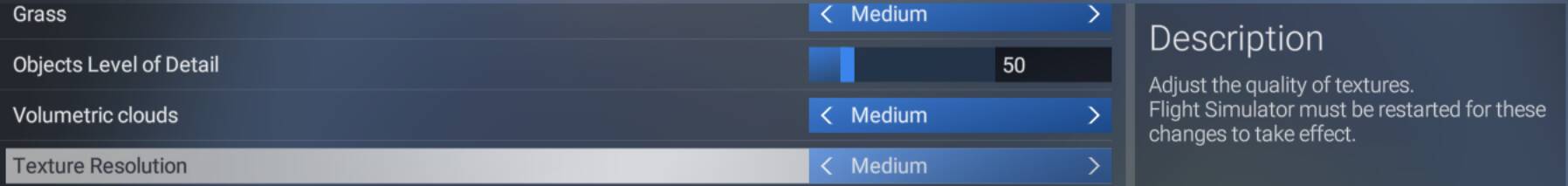 I am not aware of settings in FS2024 that require a re-start of the sim to take effect, they all should apply immediately. Could you provide some examples ?