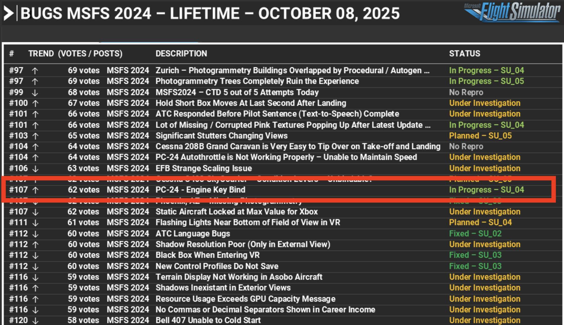 Thanks for continuing with your reports to let us know this is still an issue in Sim Update 3. I’ve made sure to pass this information on to the development team, and will circle back to this thread to update the logged status as soon as I hear any more!