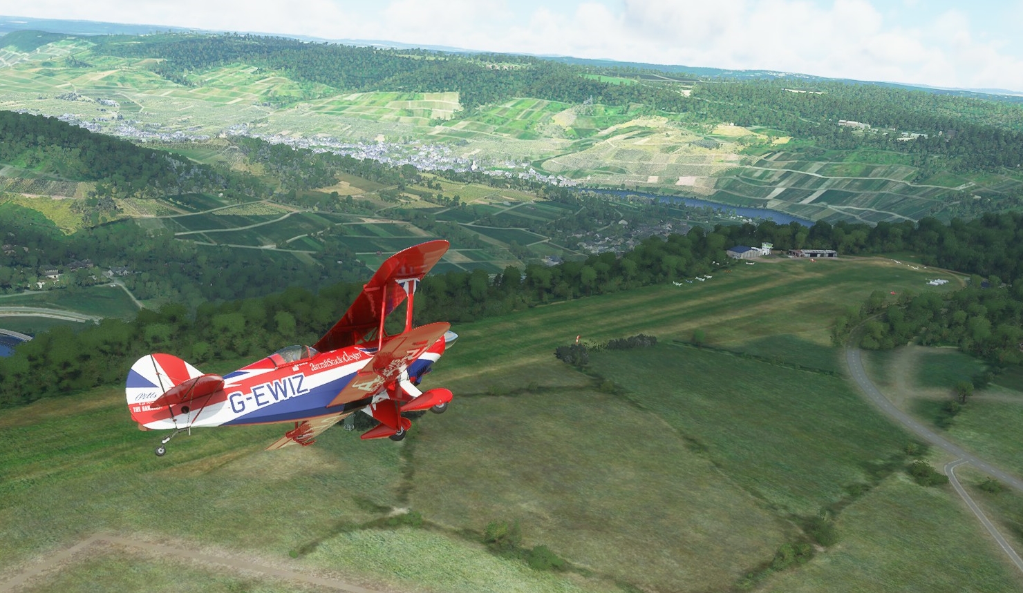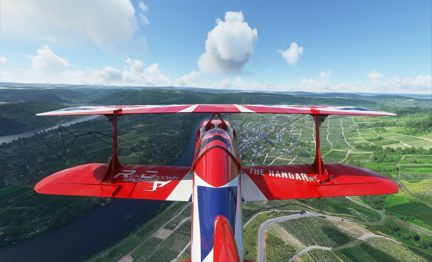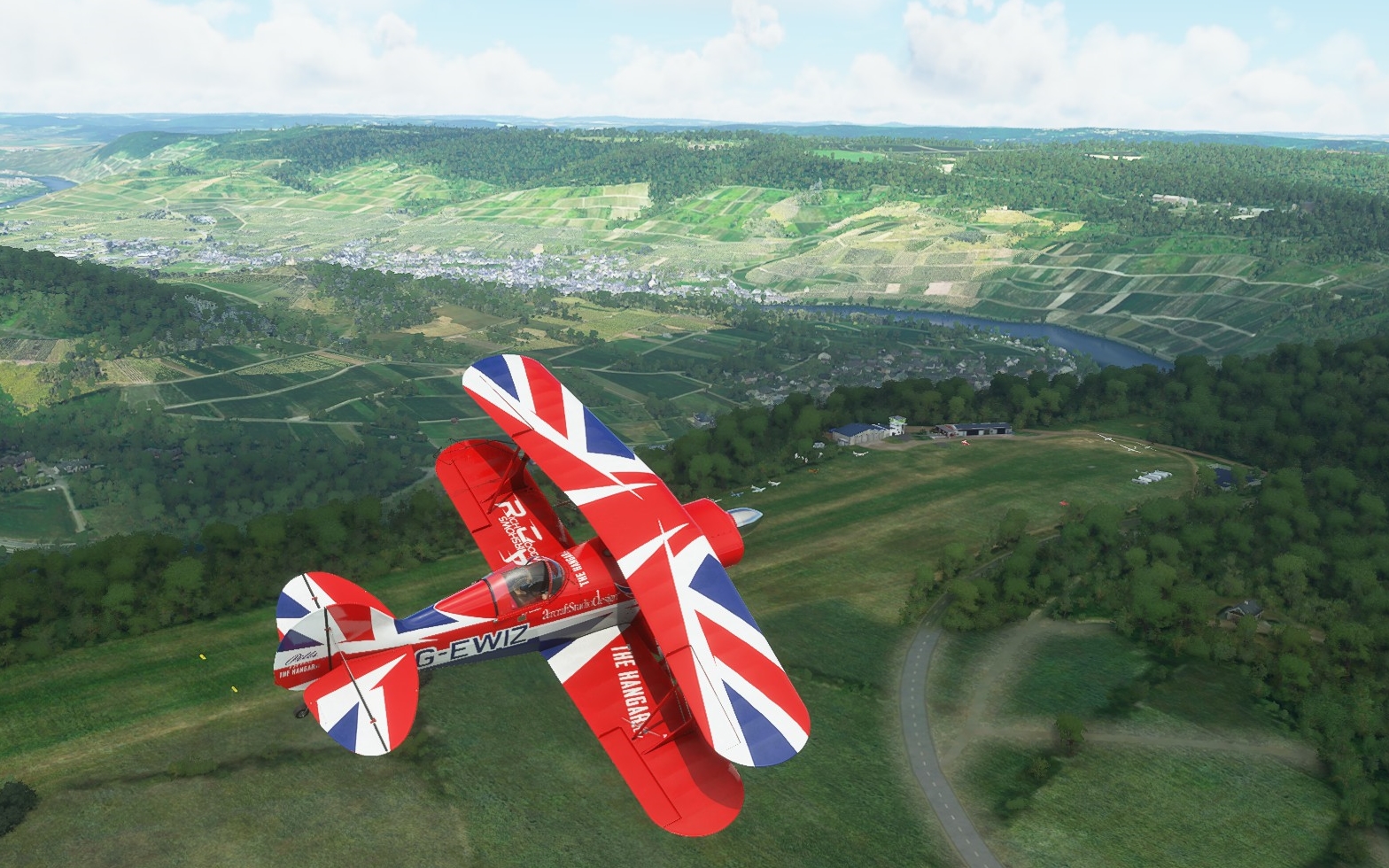 This more flamboyant livery is flown by Rich Goodwin. Due to the well-known limitations of the MSFS texture mapping, my repaint is a rendition of the livery it carried in 2015, when it just carried the Union Jack for the first time.