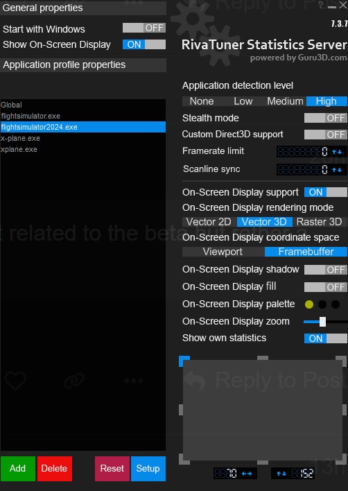 So unlike FS2020, on 2024, I can’t seem to get RTSS to work. It completely distorts the game and makes it unplayable. The In-Game FPS limiter is terrible. At least with FS2020 it would help smoothen out frame times. If I use the In-Game FPS limiter for 2024, it’s a stuttery mess.