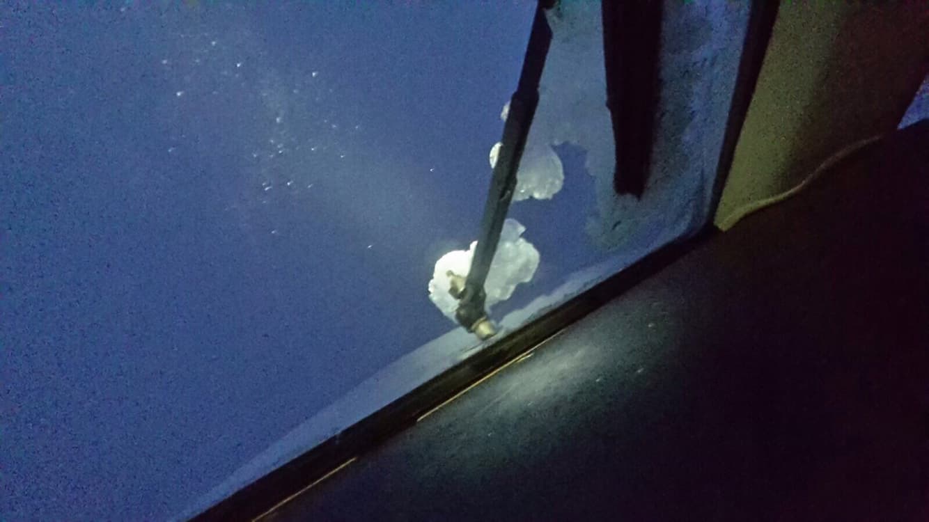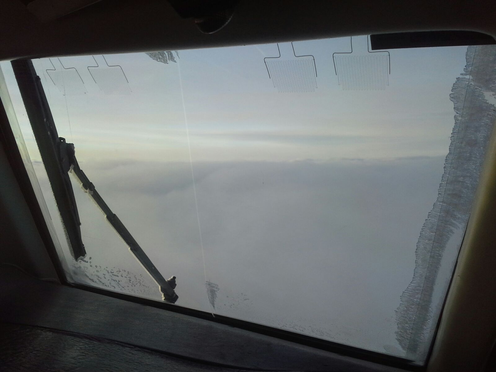 It’s a bit hard to see because of the cloud, but you can see the icing is instant and across the entire windshield.
