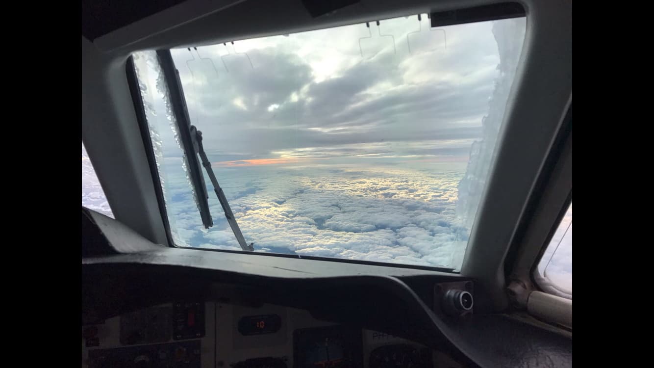 Snow or ice crystals are already solid and won’t cause icing, certainly not this uniform transparent layer of clear ice visible on the windshield. In short, three things are required for icing to form: supercooled droplets, SAT of 0C or below and freezing nuclei (airframe).