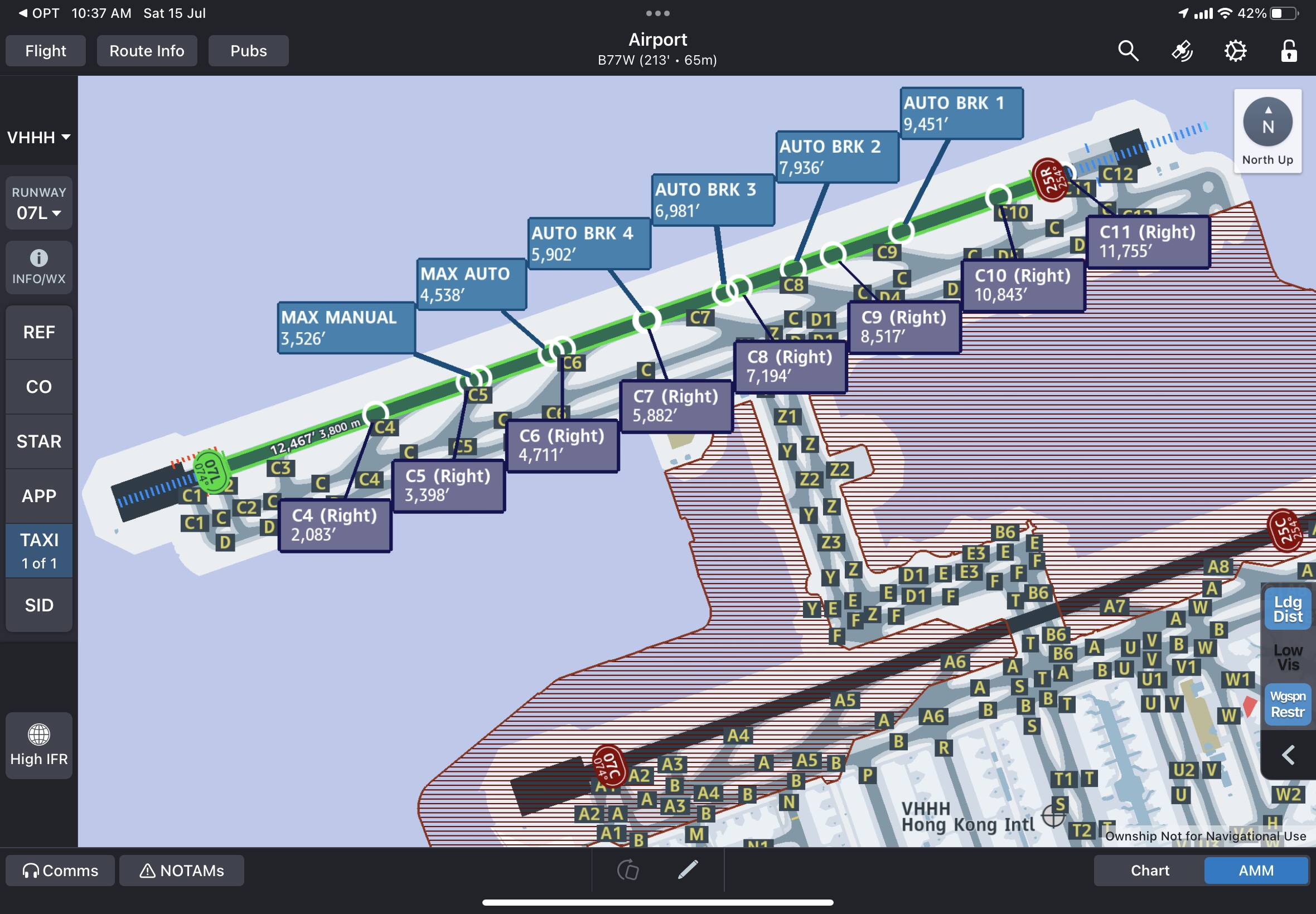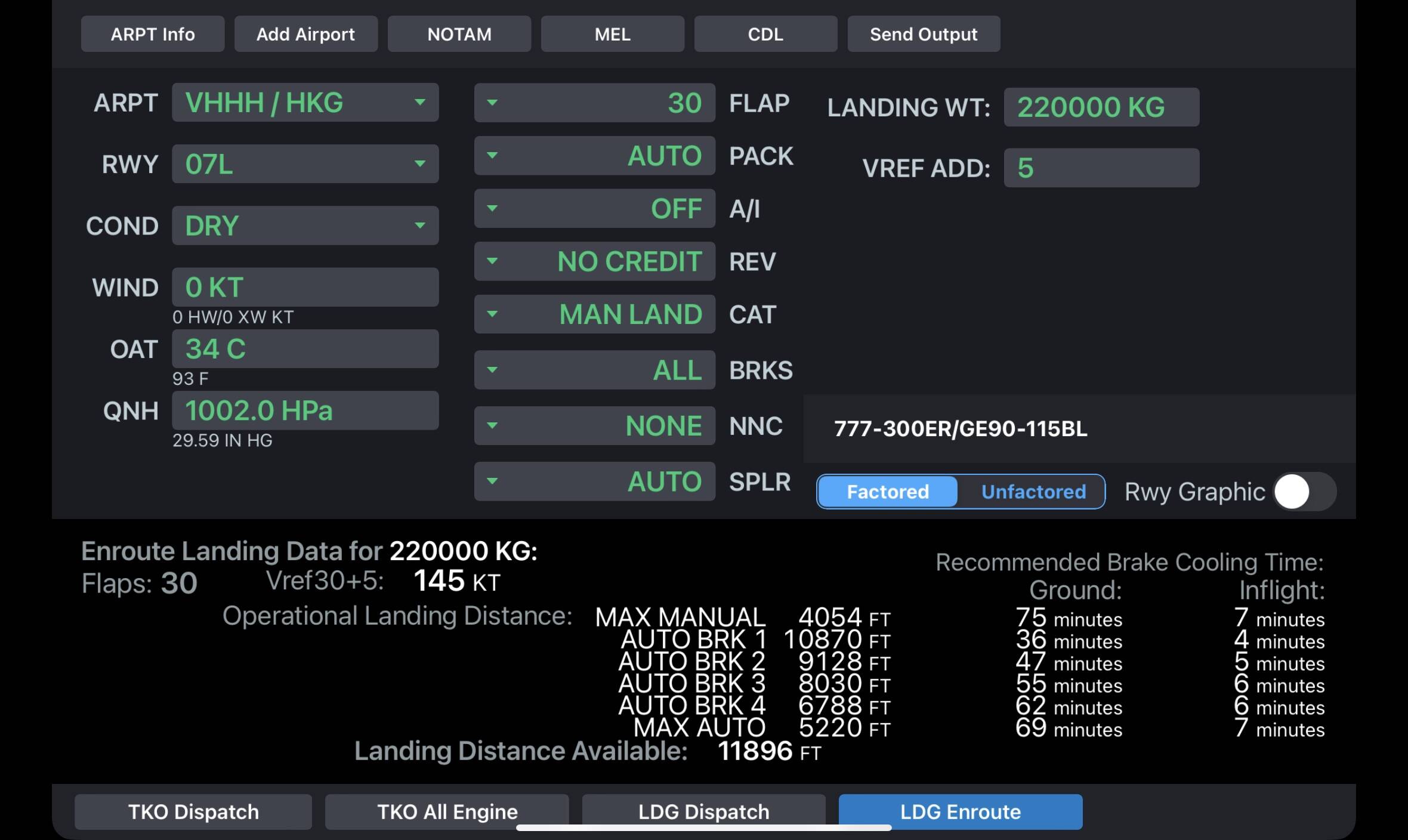 One neat feature we have, is that our apps can ‘talk’ to each other. After calculating landing data using the Boeing OPT app, we can export it to th Jeppesen FD Pro app, and display the different landing distances on the airport moving map. This is very handy for planning your runway exit, so long as you don’t stuff it up and float too much haha.