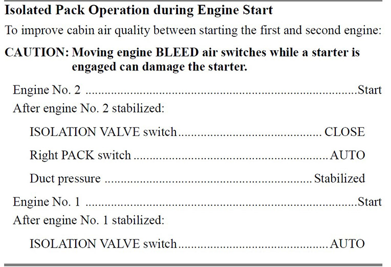 … and ENG 2 bleed air goes on before engine startup or after engine stabilized and isolation valve closed?