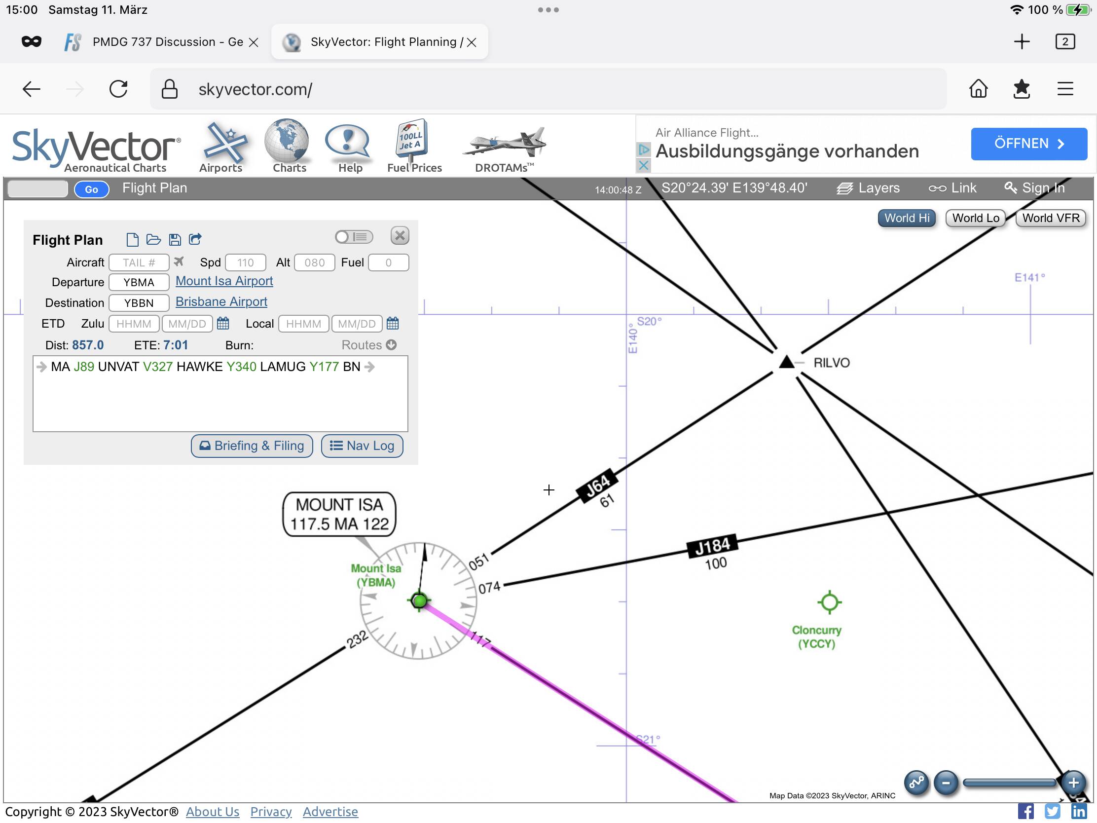 I’m missing a piece of the puzzle here (basic knowledge of FMC) as normally I always select the SID and the STAR and LNAV/VNAV works. I want to fly a route from YBMA to YBBN: YBMA/16 DCT MA J89 UNVAT V327 HAWKE Y340 LAMUG Y177 BN DCT YBBN/19L