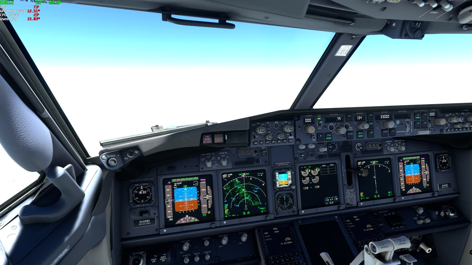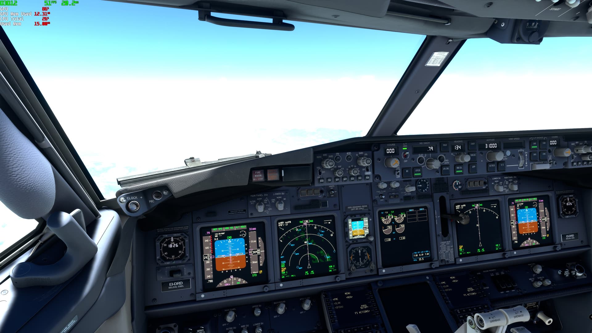 Climbing or descending…changes start crossing FL340.. up from FL340…GPU load is changing constanly from 30% to 80%…and FPS drop to about 30-35FPS…and below FL340 GPU load is more consistent between 70% to 99% and FPS variable between 45 to 60 FPS