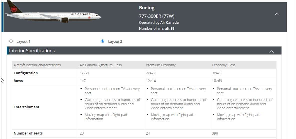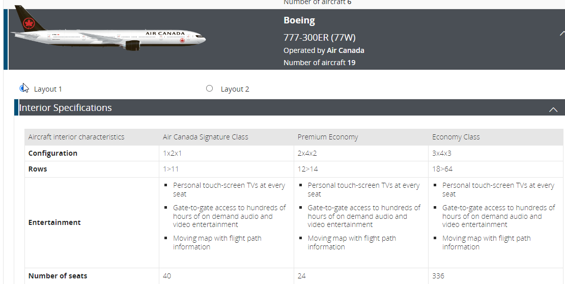 Air Canada for example has 2 different layout types.