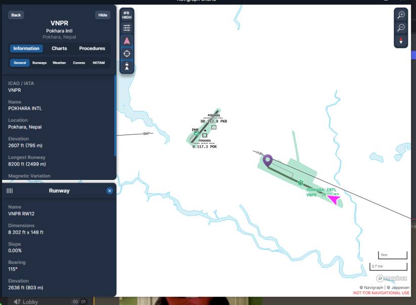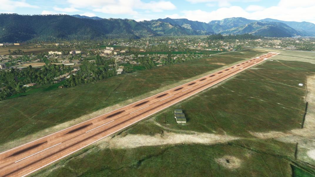 Navigraph has no charts for this field - acknowledges what you see above that there is an airport that runs 12/30 and approximately 8,200’ / 2500m in length.
