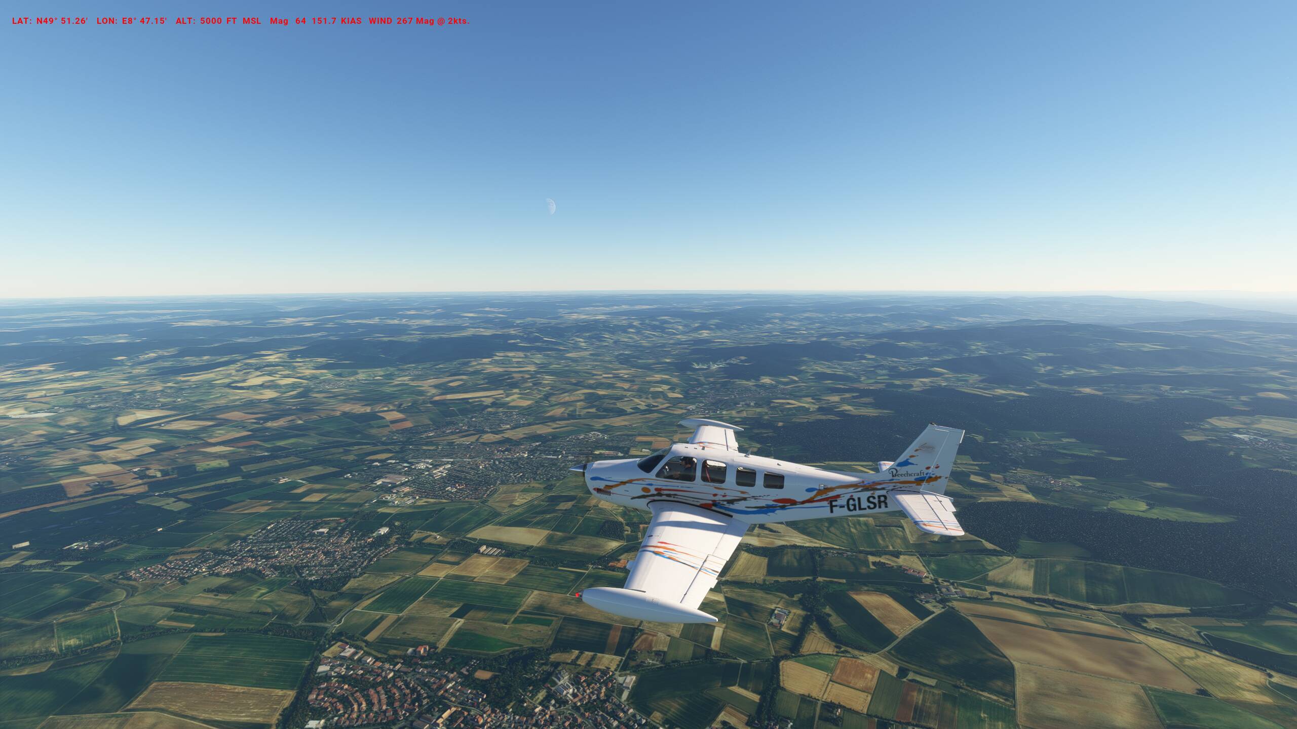 No, I don’t use Rex AccuSeason. The only add-on I use for scenery is Realistic Tree Height, which I found in the Store. Everything else is standard. Starting with image 2, it’s a flight between LFLL and LFBD with the King Air 350 at 12,000 ft.