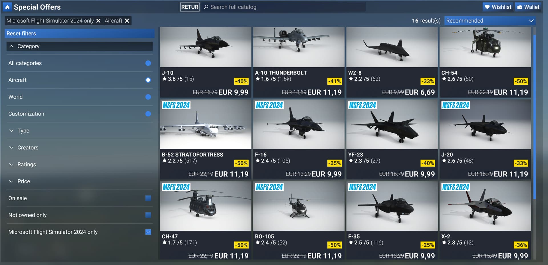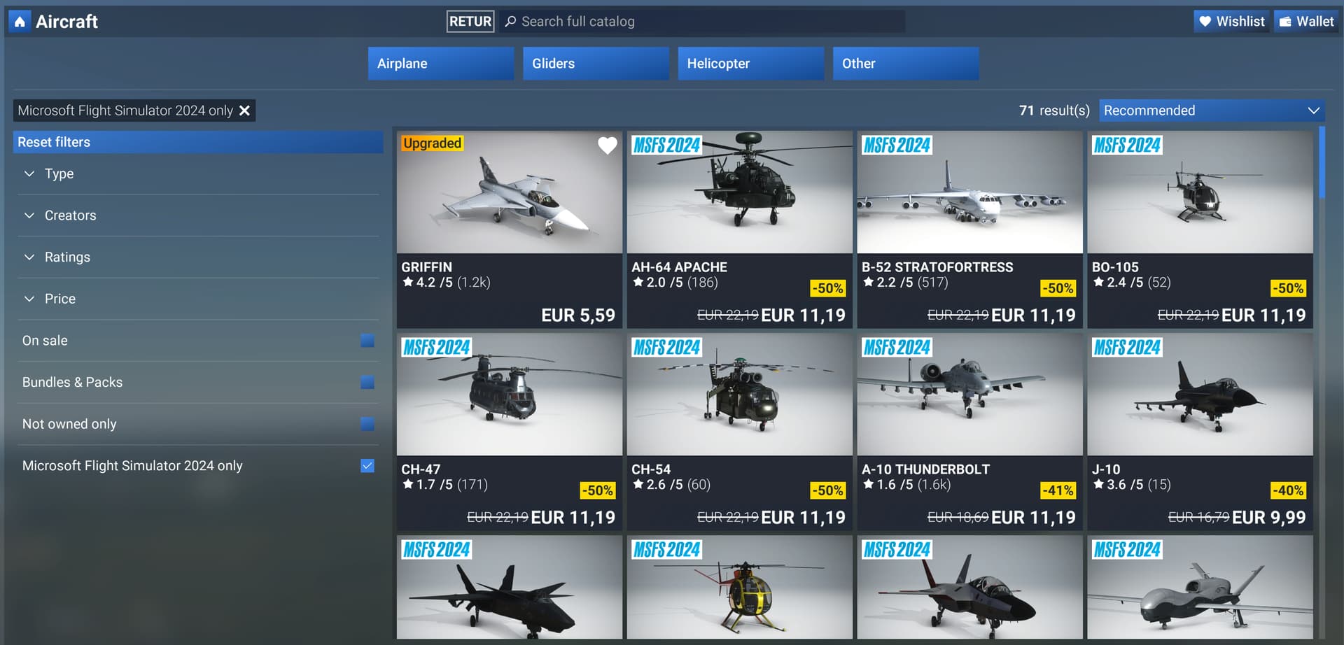 If you select special offers, aircraft and 2024 only, there’s only one that isn’t mscenery. I wonder how many who buy “top ranked” ones from that list, thinking that there aren’t any other planes compatible with 2024?