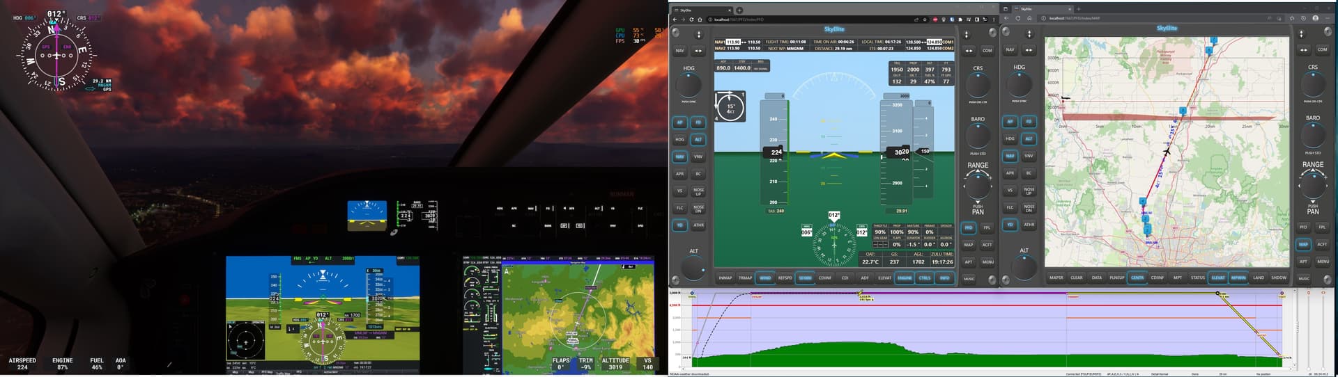 Bottom right elevation profile is actually a part of littlenavmap underneath the other two.