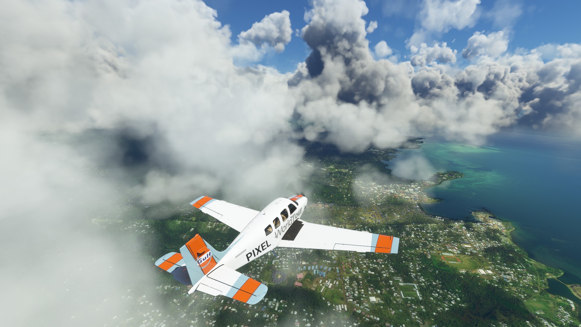 (Well there are - highly unrealistic - exceptions. There are some stupid weather presets having one thick cloud layer from 7000 feet reaching up to 40.000 feet or more, making it almost impossible to see anything except white outside the windows, but such cloud formations with only dense white fog reaching up to 40.000ft does not exist in real weather conditions. Even the most dense ground fog is never reaching higher than 1000 meters, and cloud layers are never 35.000 ft thick.)