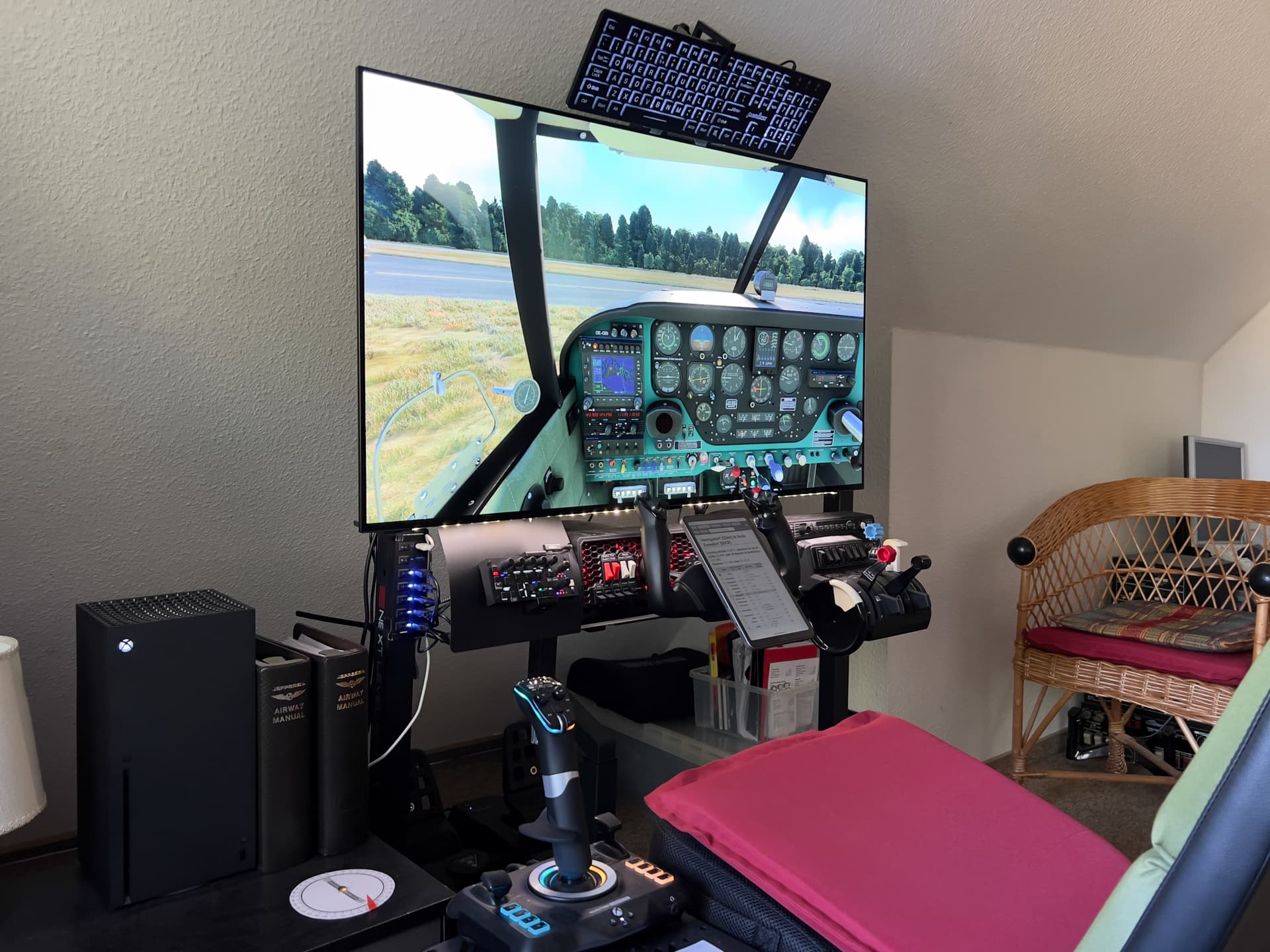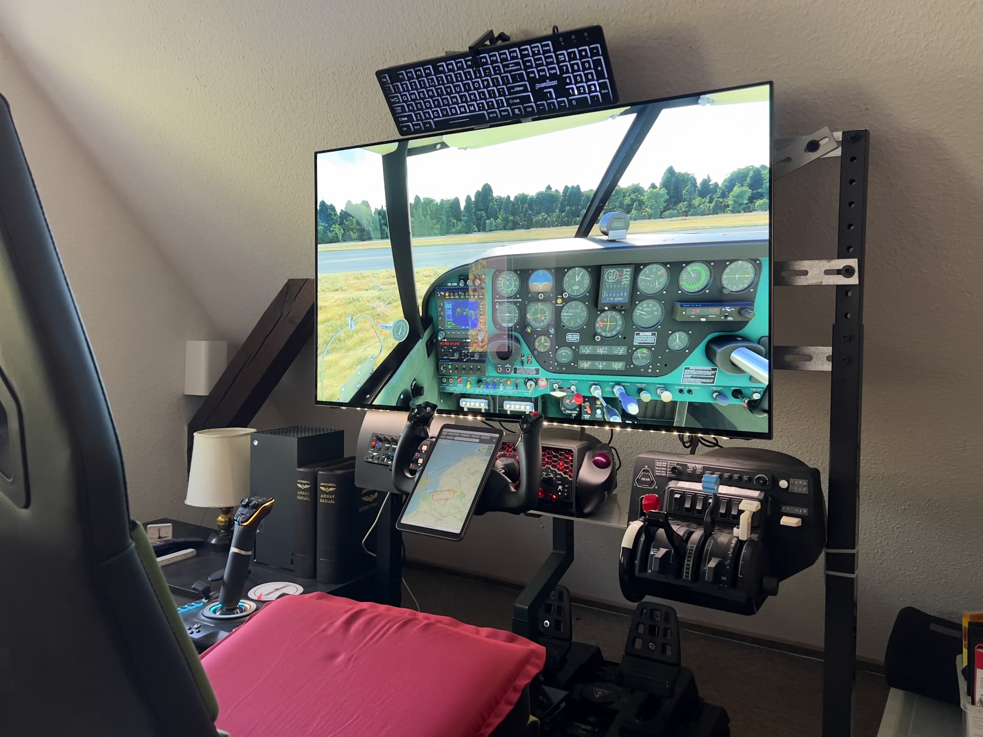 The monitor is a 42" TV with the centre of it exactly in front of my eyes and about 50cm away. To look out of the side window I have to turn my head to the left and to the right for a look at the engine gauges on the copilot’s side.