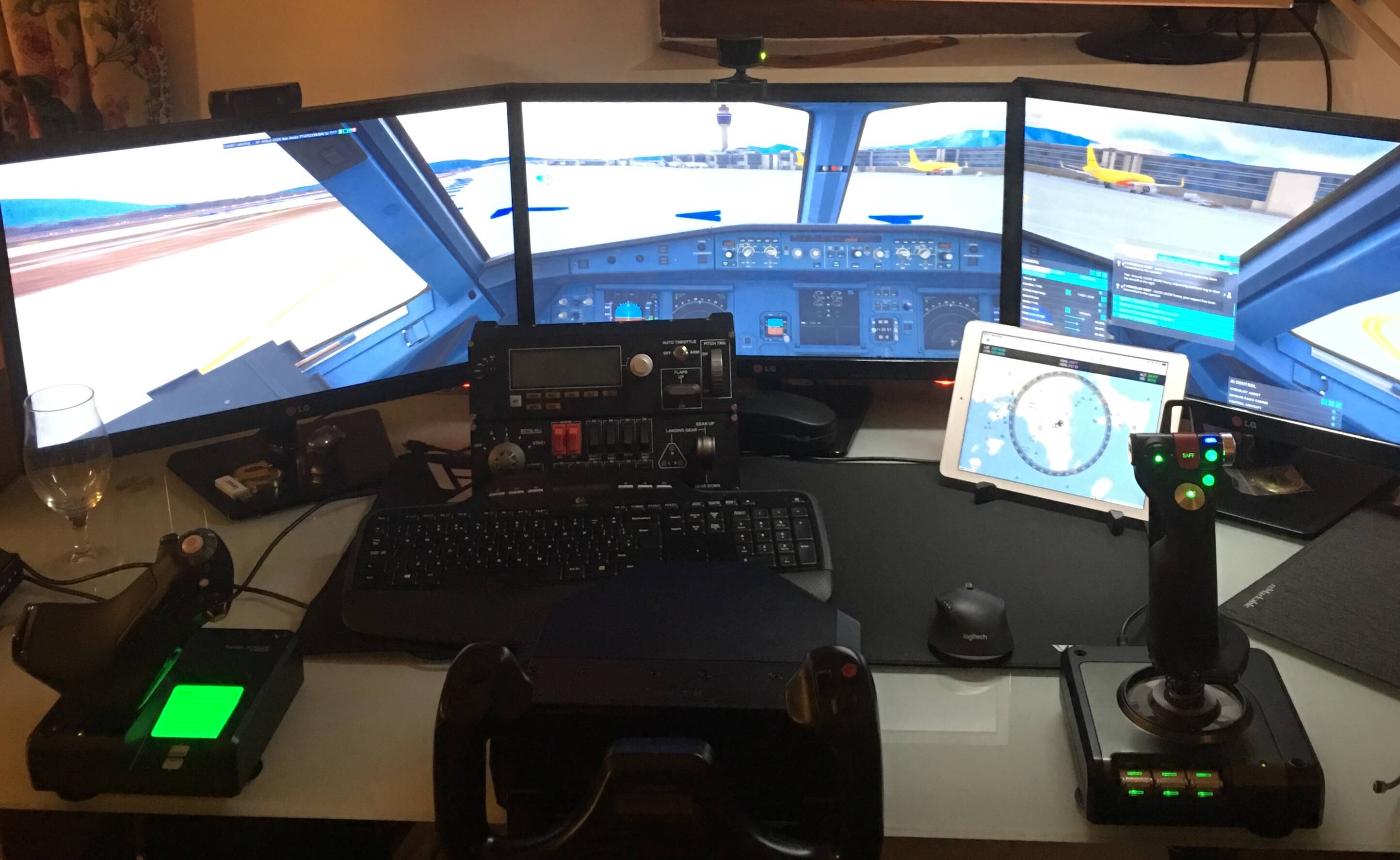 Here’s mine. The camera (I took the shot with) makes the resolution look shocking! It’s much better IRL but new monitors are definitely on the wish list. Couldn’t fly without them.
