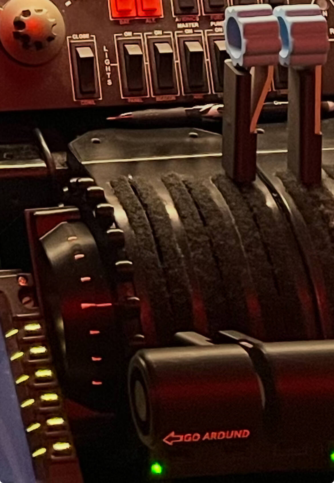 But there’s no indicator in the sim that allows us to match our physical trim before releasing the autopilot. This means after autopilot is disconnected, as soon as we touch the trim wheel, the trim in the sim snaps to the position of the physical trim control. This can be intense and lead to overstress and/or loss of control.