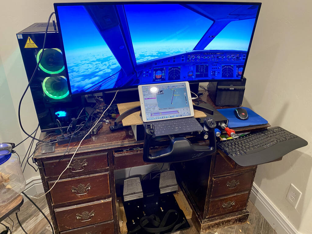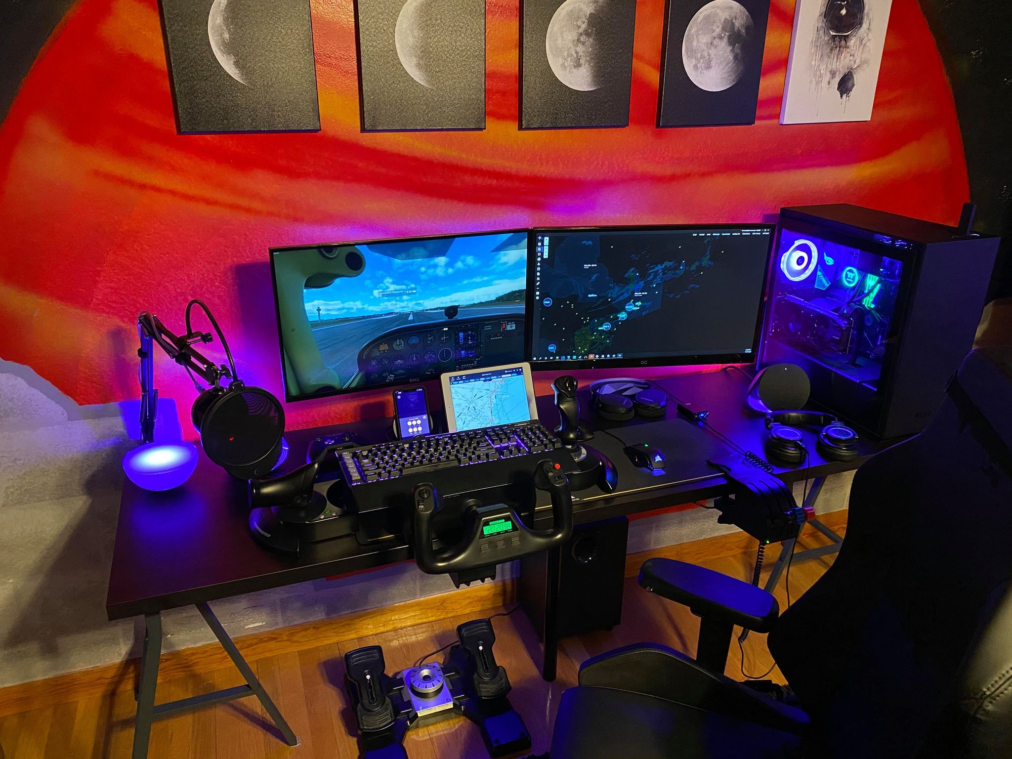Here’s mine. Hoping to build a dedicated sim cockpit with some higher end peripherals at some point down the line. For starting out, I’m just use my gaming rig / desk with the peripherals I’ve been lucky enough to get my hands on.