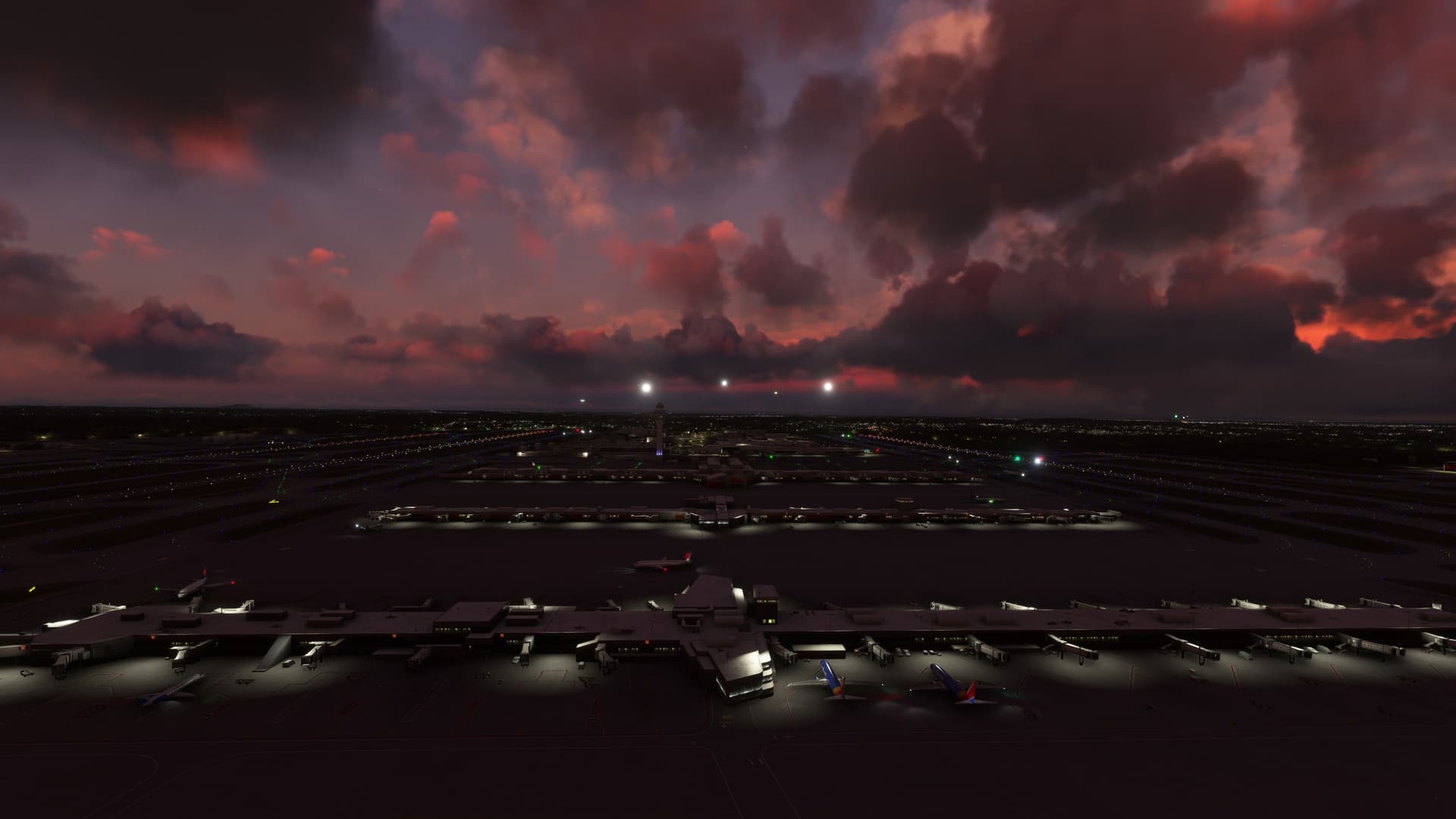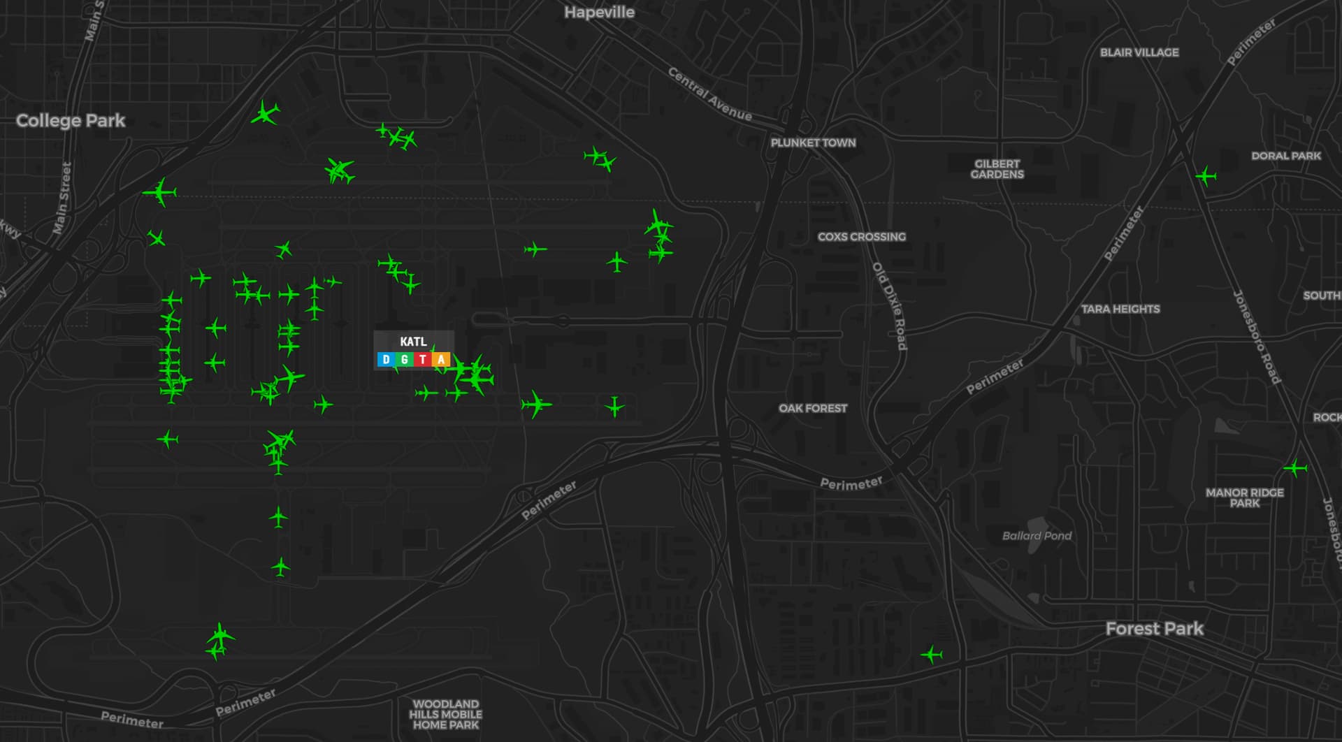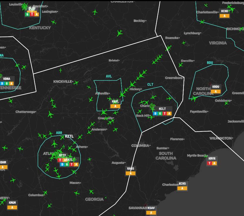 VATSIM event, 160 aircraft either at or coming to KATL, plus some storms.