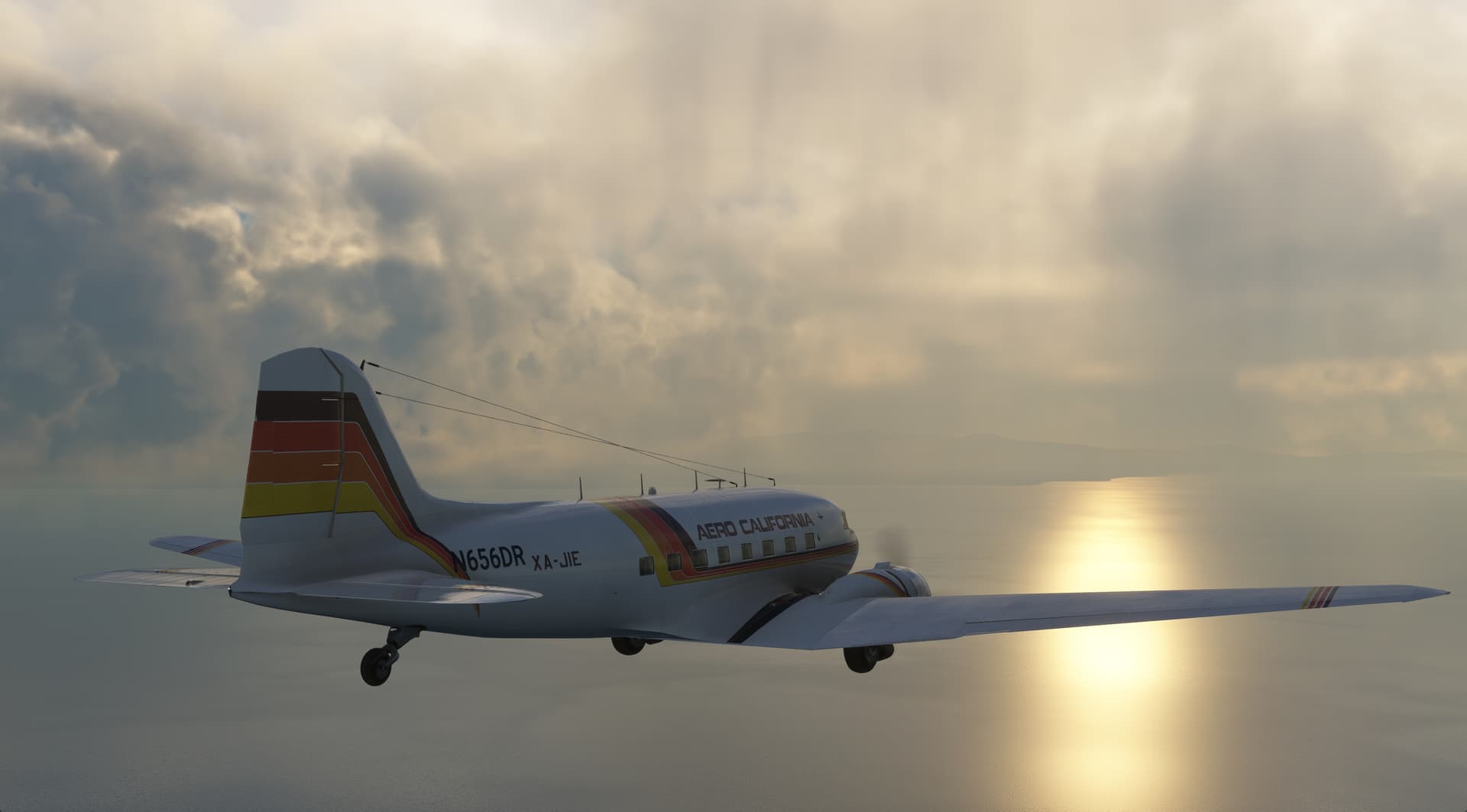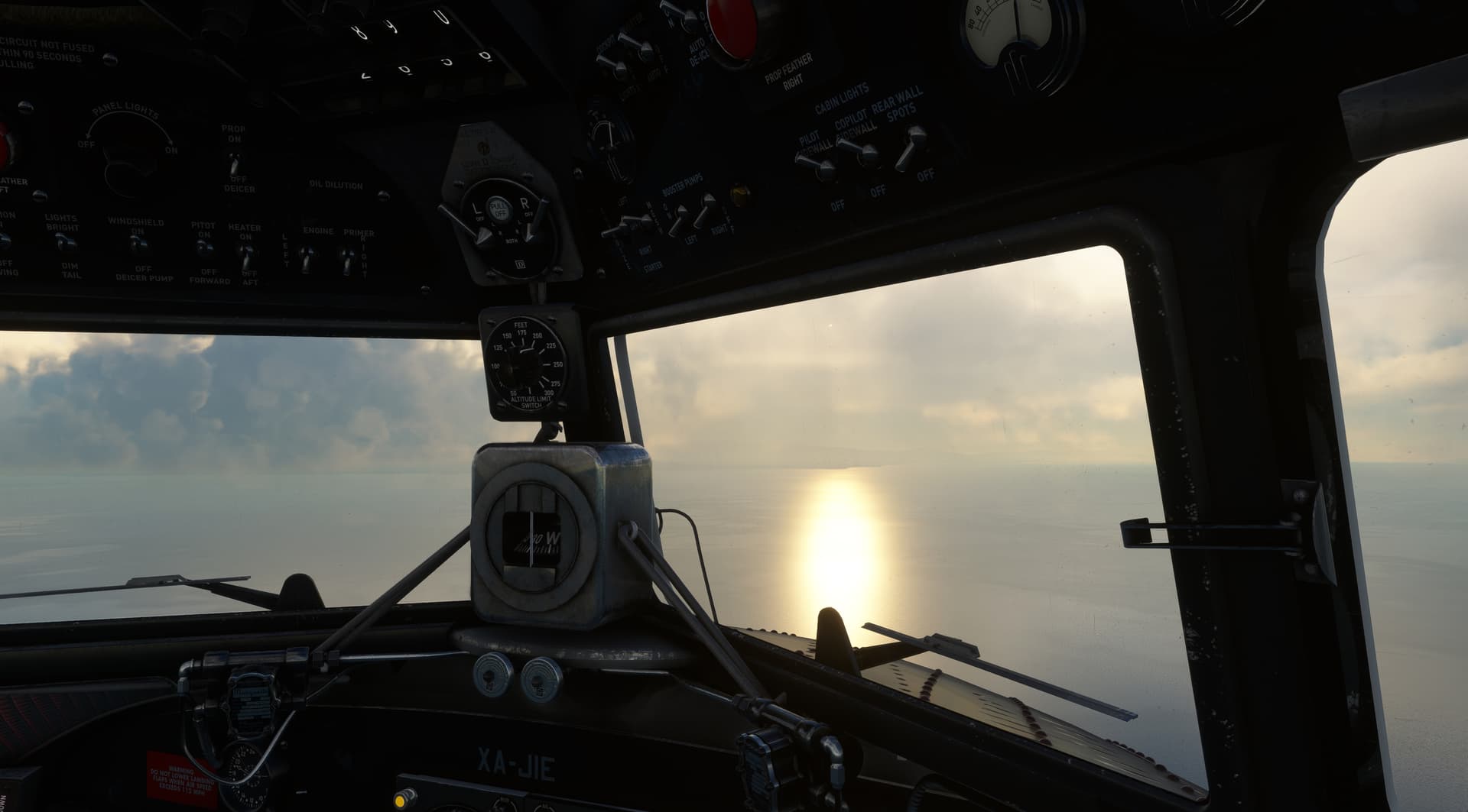 The red position light represents the setting sun in this screenshot.