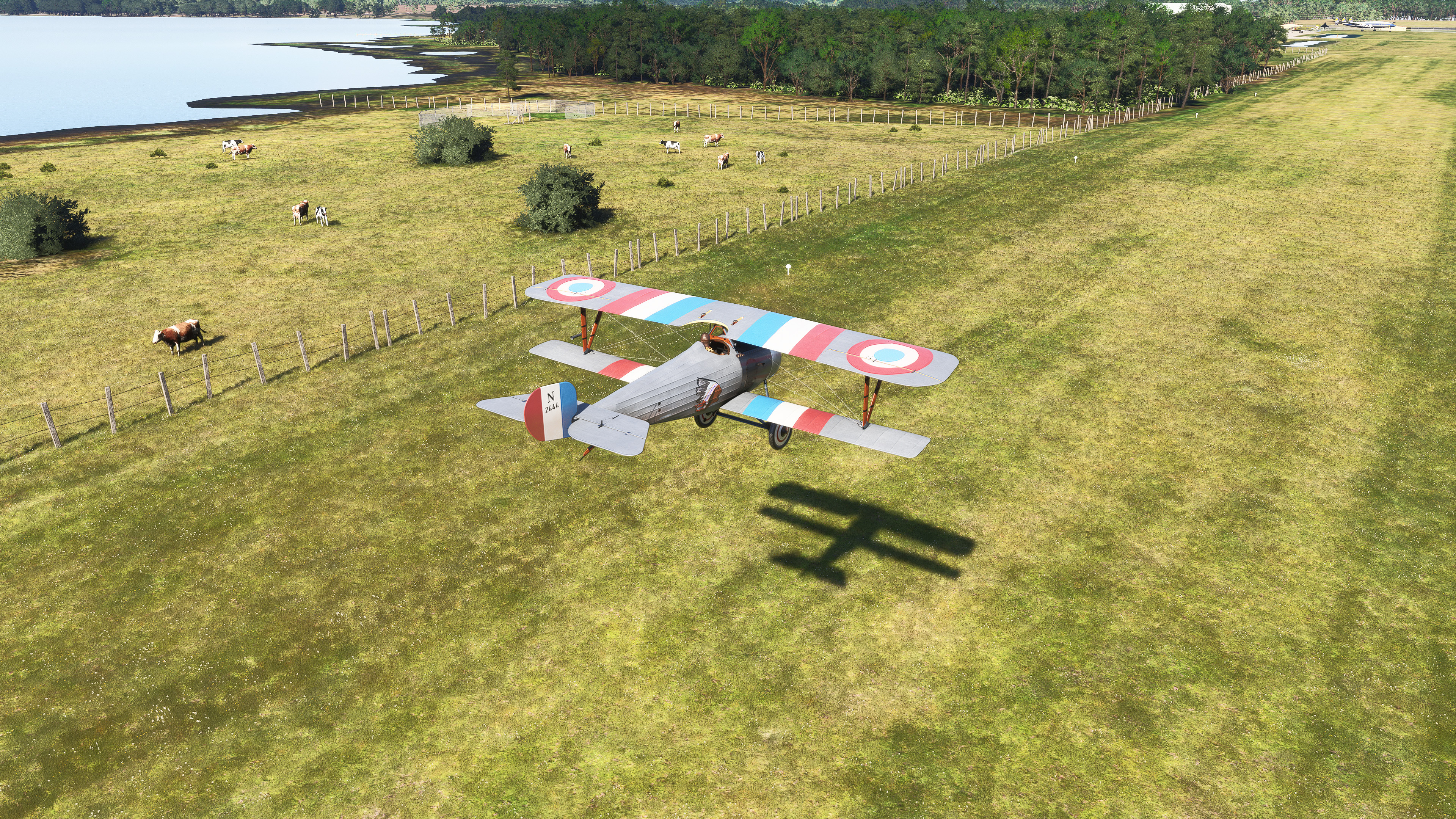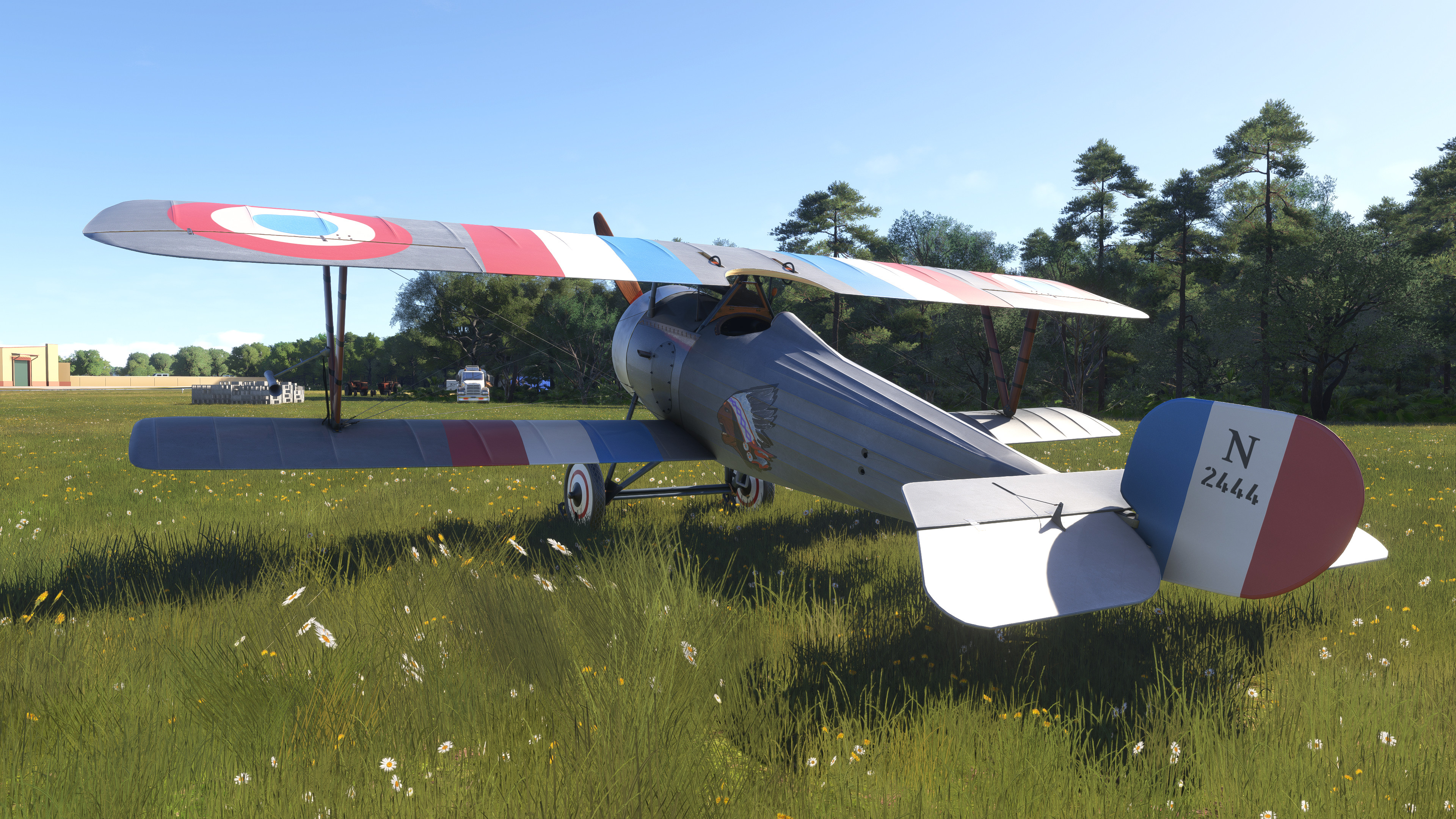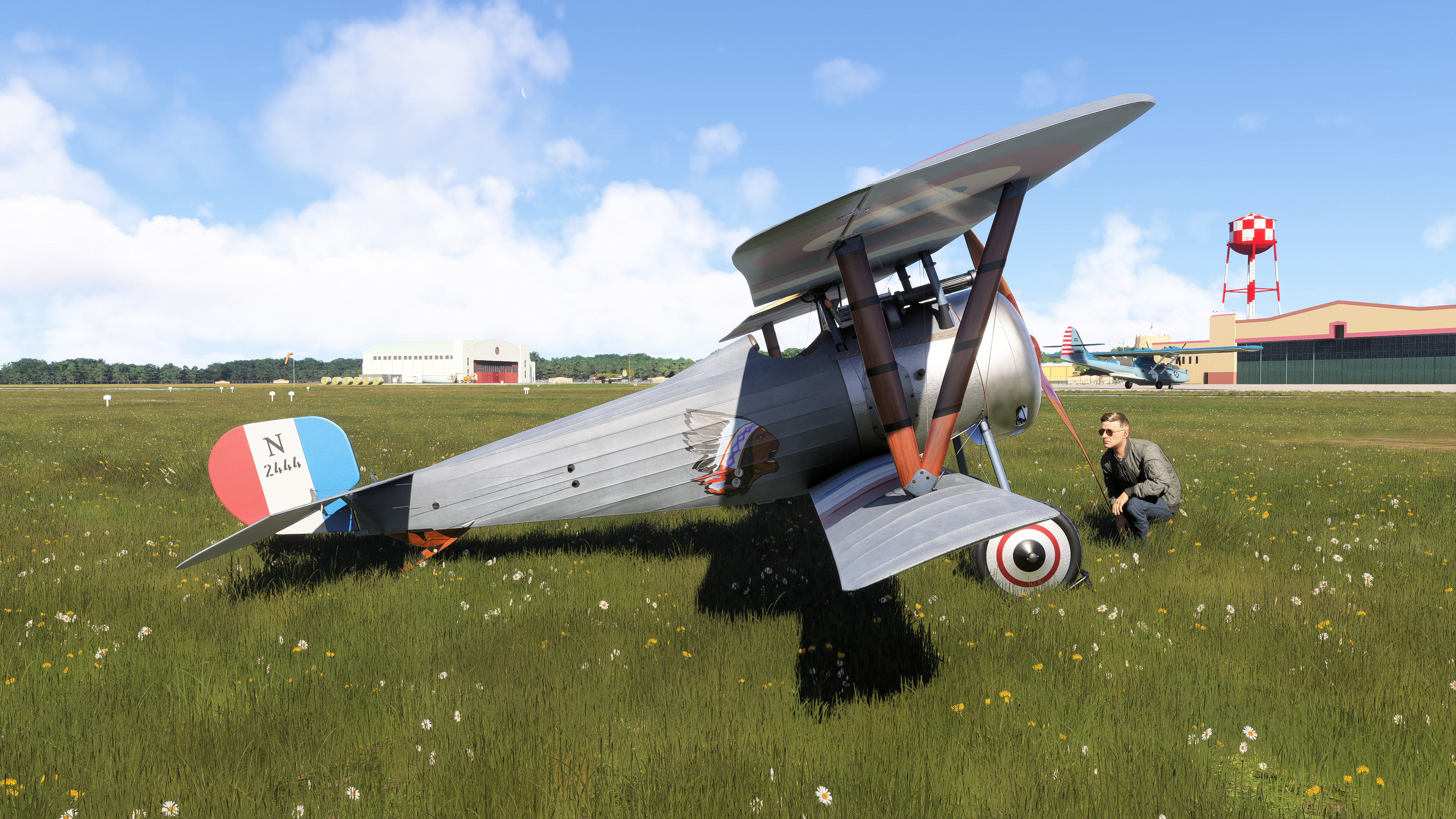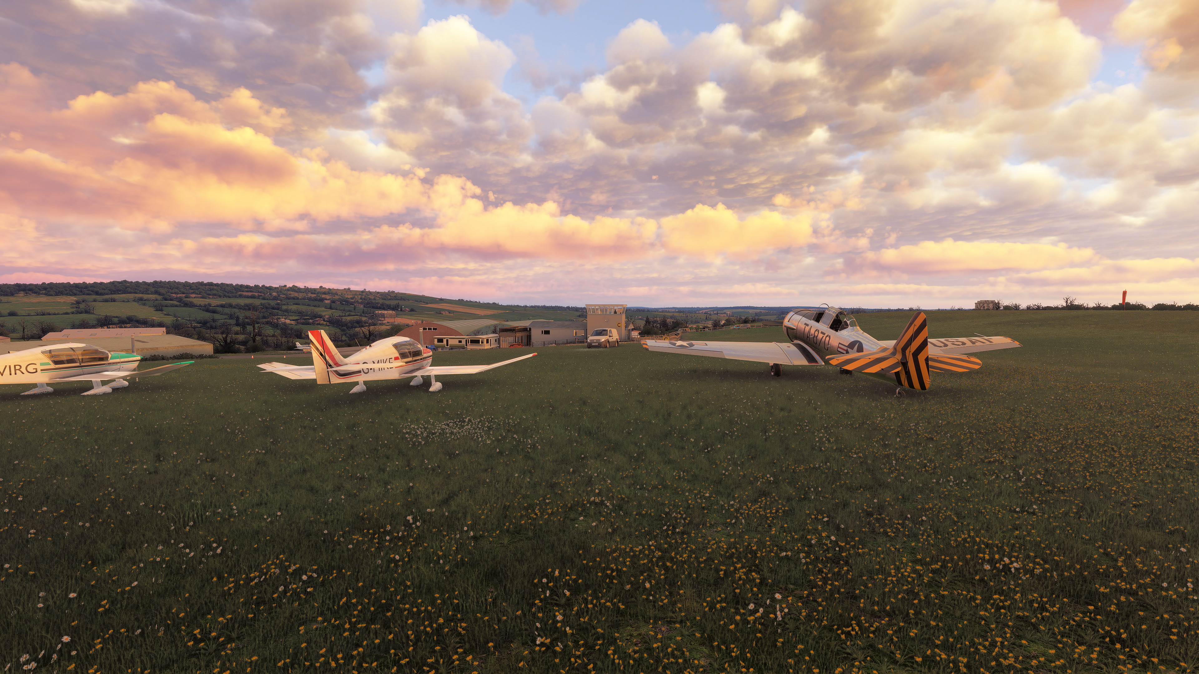 EDTG Bremgarten Airport is one of the well over one thousand default GA airports in MSFS 2024 that are hand-crafted, with numerous custom-made hangars and hand-placed static objects, but that of which are not indicated as being hand-crafted from the menu. Real-life Bremgarten is home to MeierMotors/Max Alpha Aviation, which has been responsible for numerous warbird restorations including several Bf 109s, Flug Werk Fw 190s, P-51 Mustangs, Yak fighters, Sea Furies, a Corsair and more. This completely default version of Bremgarten Airport in MSFS 2024 features accurately-made hangars and signage, very, very closely matching the real airport. The Bf 109G ‘D-FOON’ (converted Buchon), as seen depicted in these screenshots, is one of the Bf 109s restored/rebuilt by MeierMotors at Bremgarten, and did all of its test flying there before it was shipped to the US (where it now flies in Virginia, as N109GY).