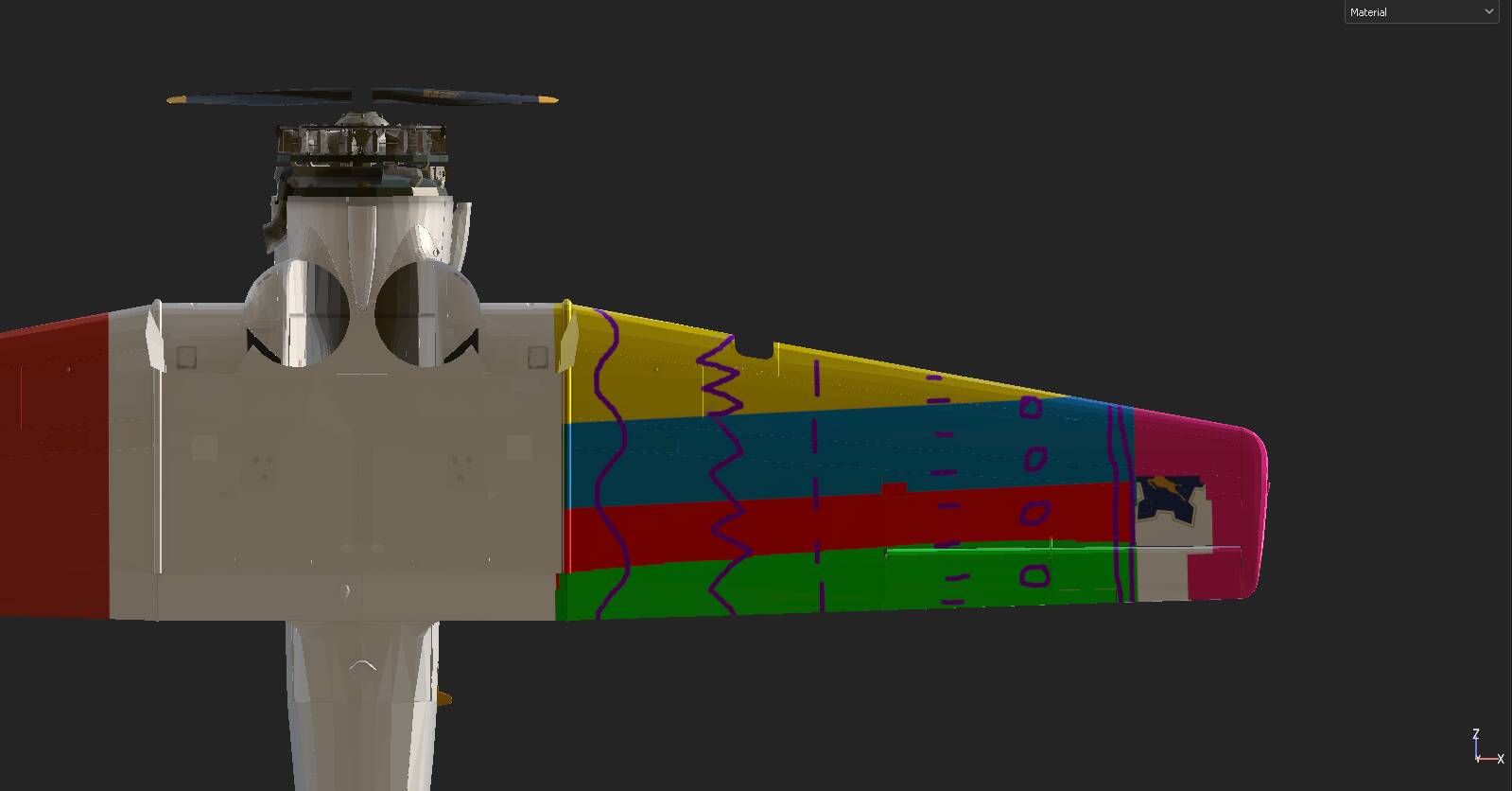 Notice how on the trailing edge next to the flaps it’s repeating part of the texture from the front of the wing (instead of being the green colour it should be)?