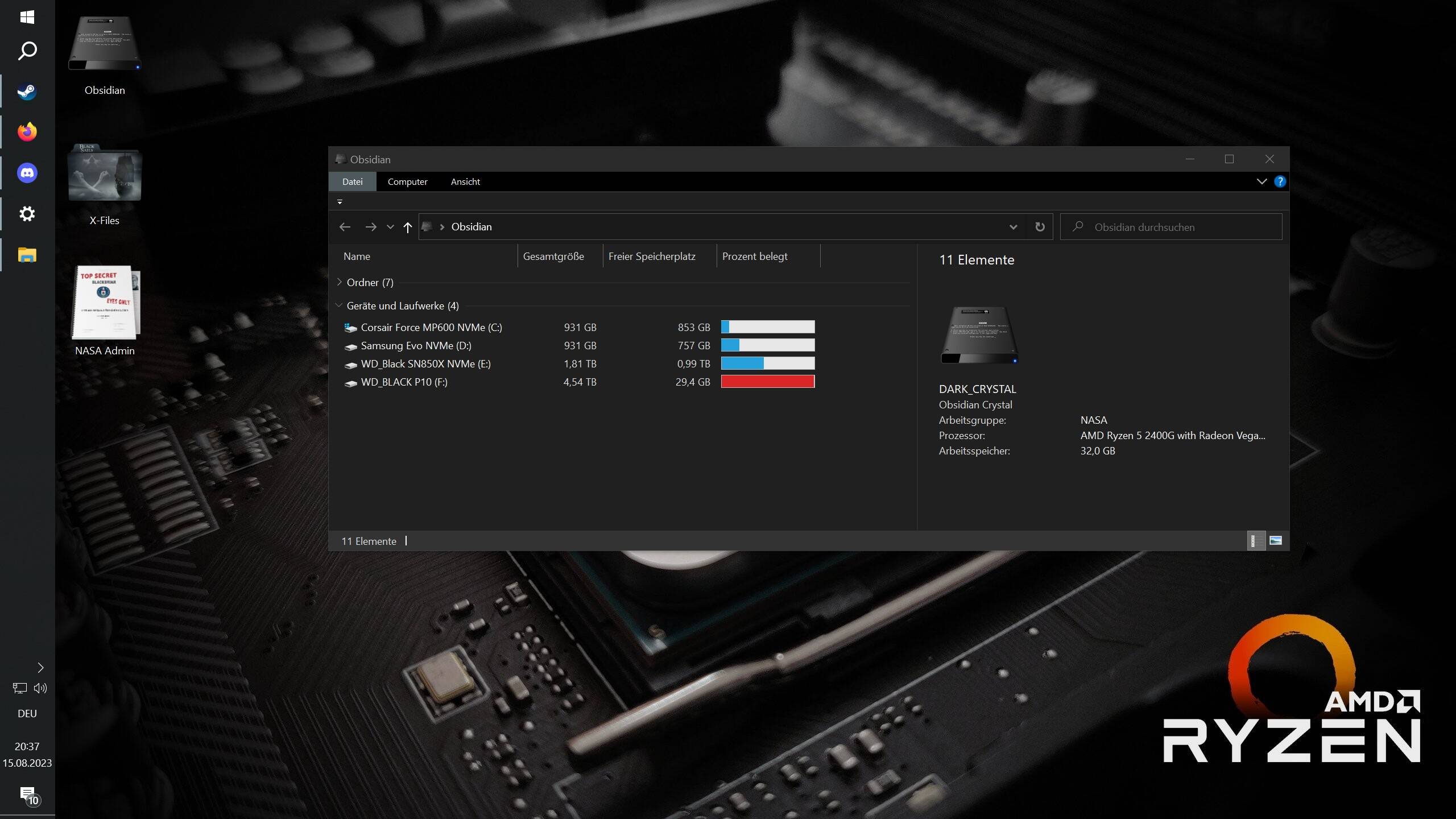 *(for reliable long-term data storage regular 5 - 12TB mechanical drives are used, most of them are unplugged the whole year and are only for backup.)