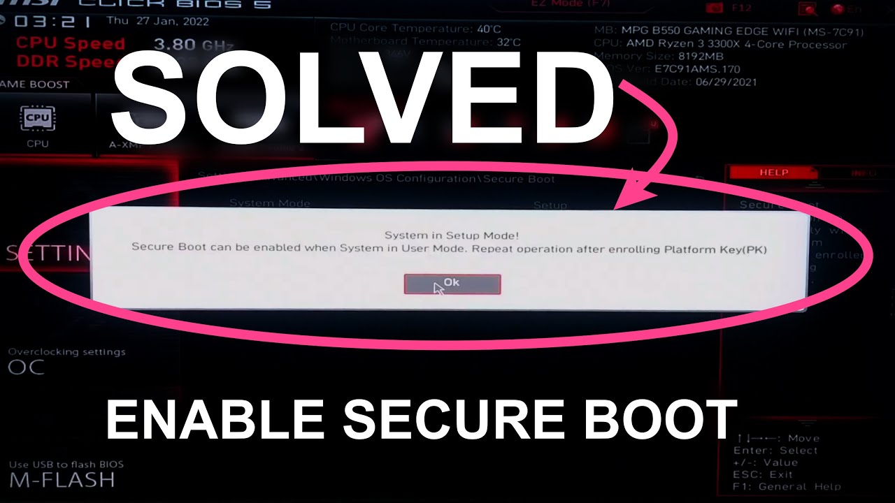 Secure boot can be enabled when system in User Mode. Repeat operation after enrolling platform key (PK.)”