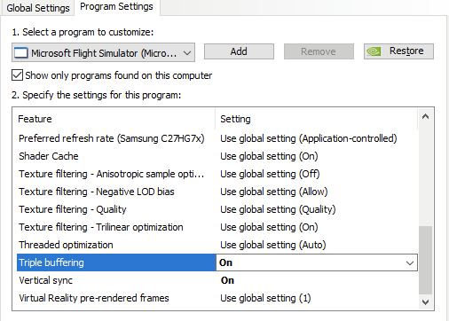 ātripple buffering on vync parametres to ONā this is on nvidia control panel correct ?