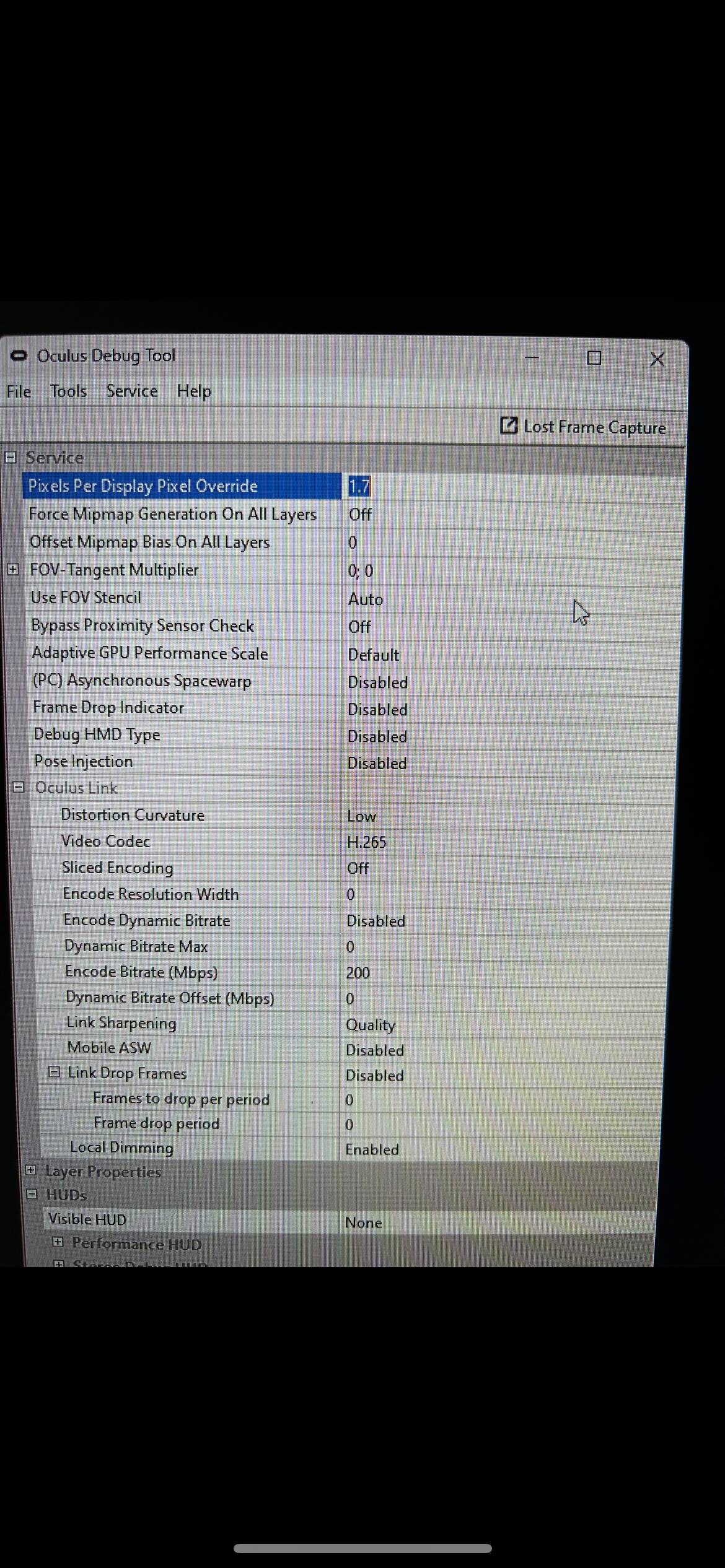 - For wired PCVR use, adjust bitrate and distortion curvature settings in the Oculus Debug Tool.