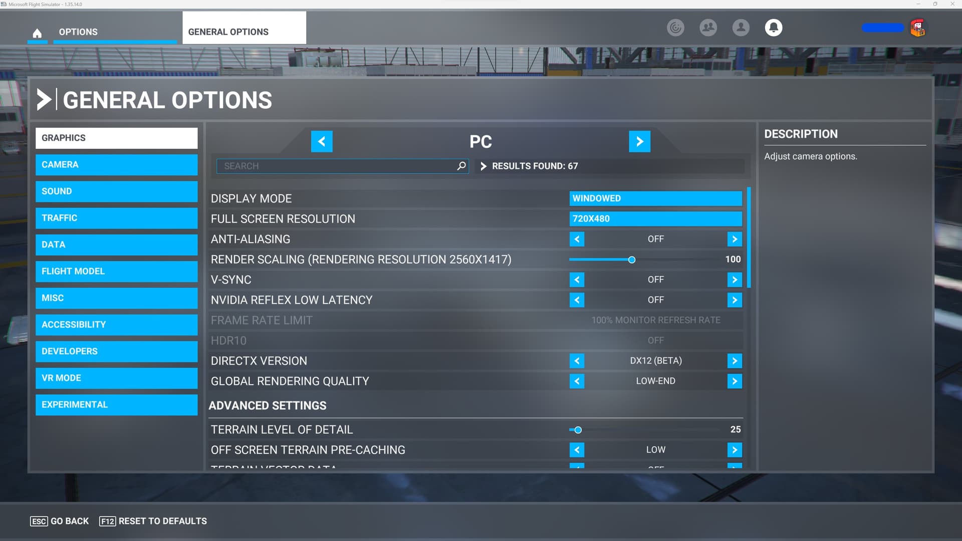 Note: after launching (or updating) Flight Simulator, ensure that these options were not changed.